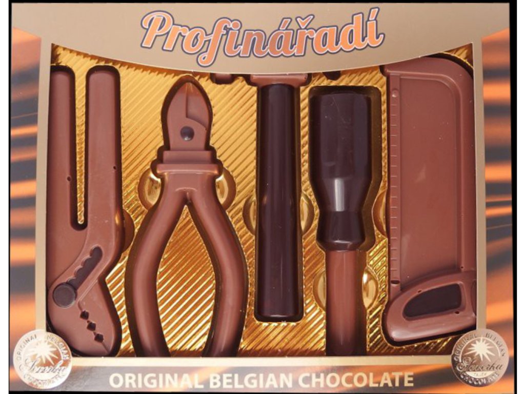 Náradie z čokoládovej dielne je ideálna sladká maškrta pre každého šikovného kutila s mlsným jazýčkom. Obsah sady s profi náradím je vyrobený z lahodnej belgickej čokolády. Mliečno-horká kombinácia dostane naozaj každého. Doprajte svojmu domácemu kutilovi príjemné chvíle oddychu pri tejto skvelej tematickej pochúťke. Jeho chuťové poháriky budú plesať. Čokoládové profi náradie predstavuje originálny darček pre každého zručného muža.
