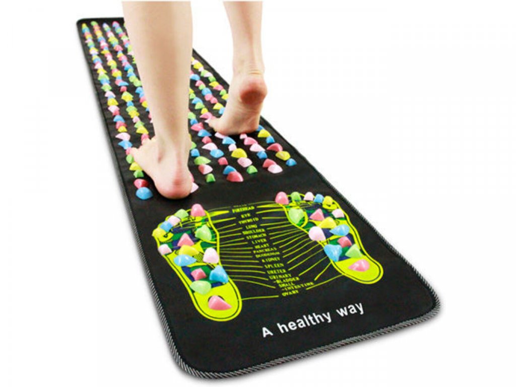 Potrebujete sa odreagovať po ťažkom dni v práci? Neviete, kde Vám hlava stojí a bolí vás každý kúsoček tela? Radi Vám pomôžeme príjemne sa odreagovať. Akupresúrna kamienková podložka stimuluje reflexné oblasti a body chodidiel, podporuje metabolizmus a cirkuláciu krvi. Akupresúrna kamienková podložka Vám dodá potrebnú energiu a zmierni únavu svalov. Pomáha tiež posilniť imunitu a upraviť funkciu vnútorných orgánov. Akupresúrna kamienková podložka masíruje akupunktúrne body a tým pomáha zmierniť bolesť chrbta. Pomocou podložky sa vaše telo zregeneruje a vy si pritom doprajete príjemnú a zdravú masáž chodidiel.