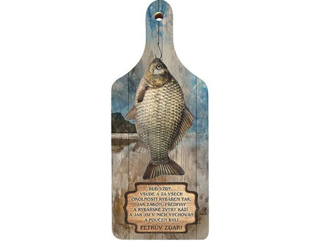 Máte vo svojom okolí rybára, ktorý sa rád pohybuje v kuchyni? V tom prípade máme pre vás námet na skvelý darček pre tohto tichého blázna v kuchynskej zástere. Obdarujte ho originálnou dekoračnou doskou na krájanie s rybárskym motívom. Na doske je vyobrazený triumfálny úlovok, za ktorý by sa nemusel hanbiť žiaden rybár, a text pripomínajúci zachovávanie rybárskej etiky a zákonov. Dekoračná doska je vkusným spestrením kuchyne, ale je tiež vhodná na chatu. Je možné ju zavesiť na stenu. Predstavuje výborný darček pre každého rybára.