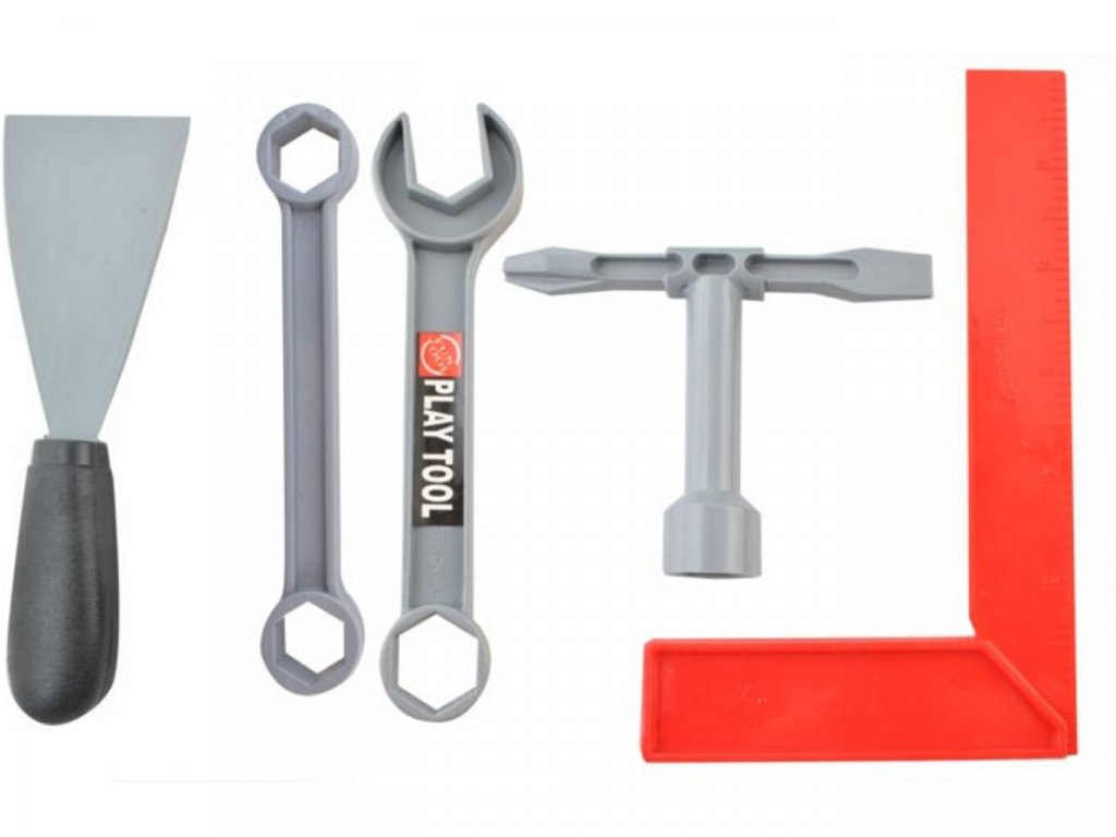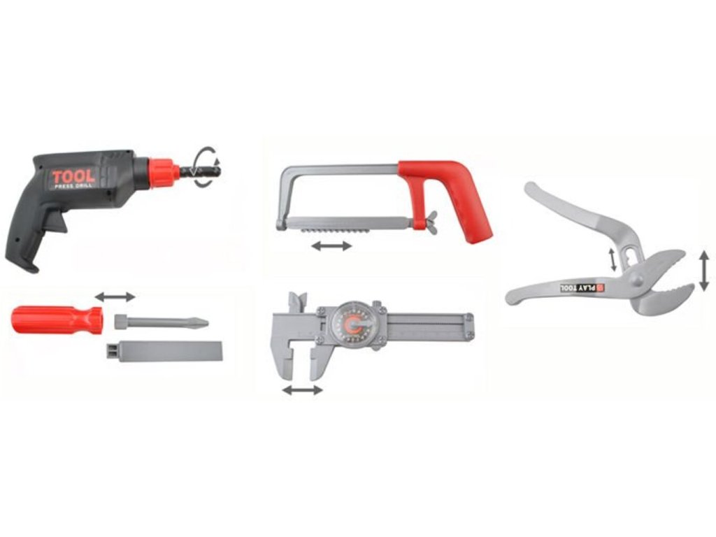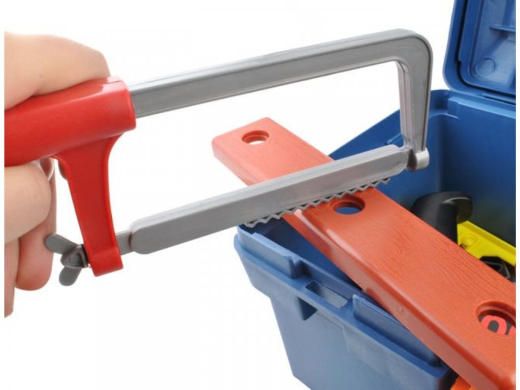 Skvelá sada nástrojov v kufri pre malých kutilov. Sada rozvíja manuálne zručnosti, predstavivosť, zodpovednosť a usilovnosť. Je to skvelá zábava. Nástroje sú funkčné - vrták má rotačný vrták (nie sú potrebné batérie), kľúč je nastaviteľný, ručná píla je pohyblivá a skrutky zo sady možno zaskrutkovať.