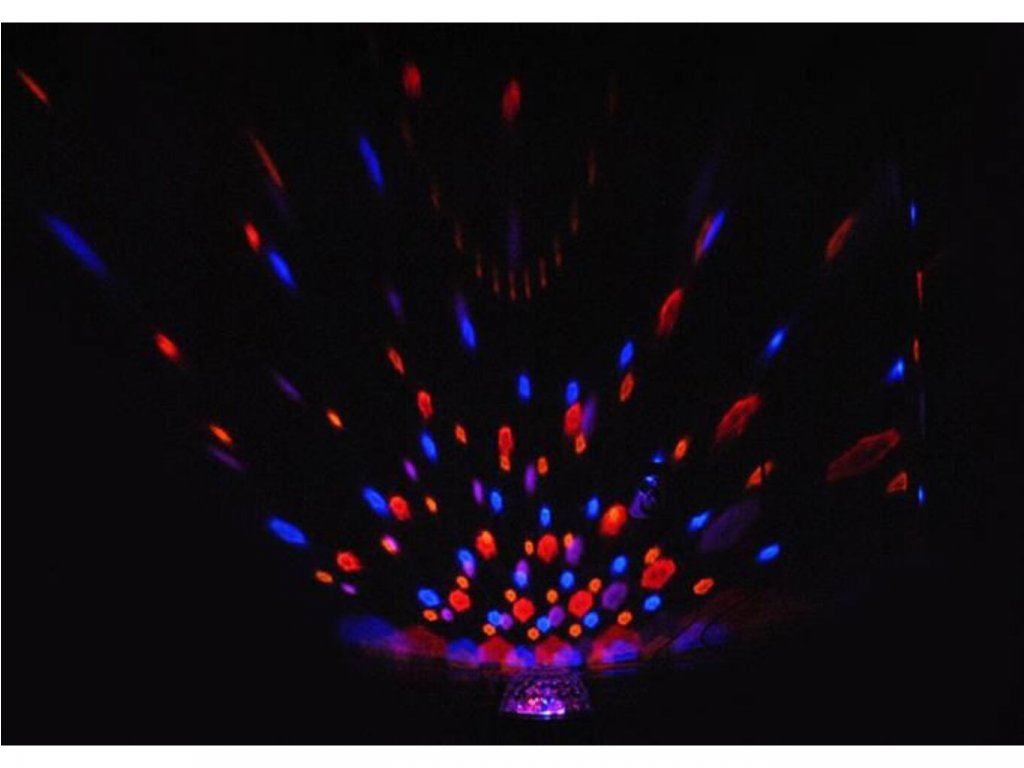 Staňte sa kráľom večierkov a skvelých párty. S touto disco LED guľou pripravíte pre svojich hostí nezabudnuteľnú zábavu. Farebné svetelné efekty ich vyprovokujú k tancu a k oslavovaniu v jedinečnej disco atmosfére. Vaši priatelia budú párty u vás doslova milovať. Rotačná guľa je úsporná a ovláda sa pomocou diaľkového ovládača. Predstavuje skvelý darček pre každého usporiadateľa večierkov a divokých párty.