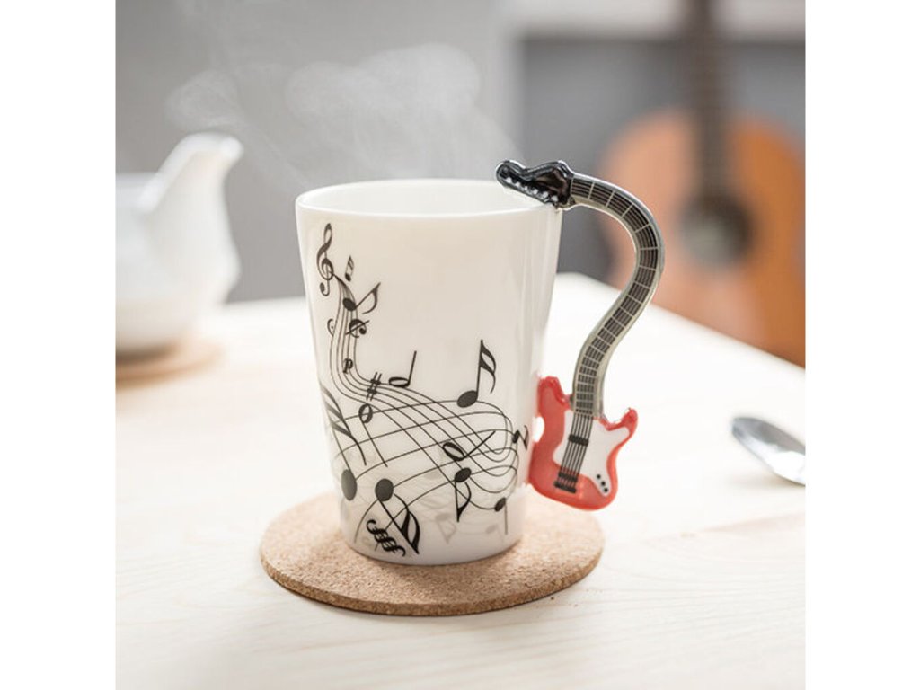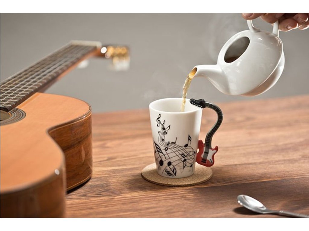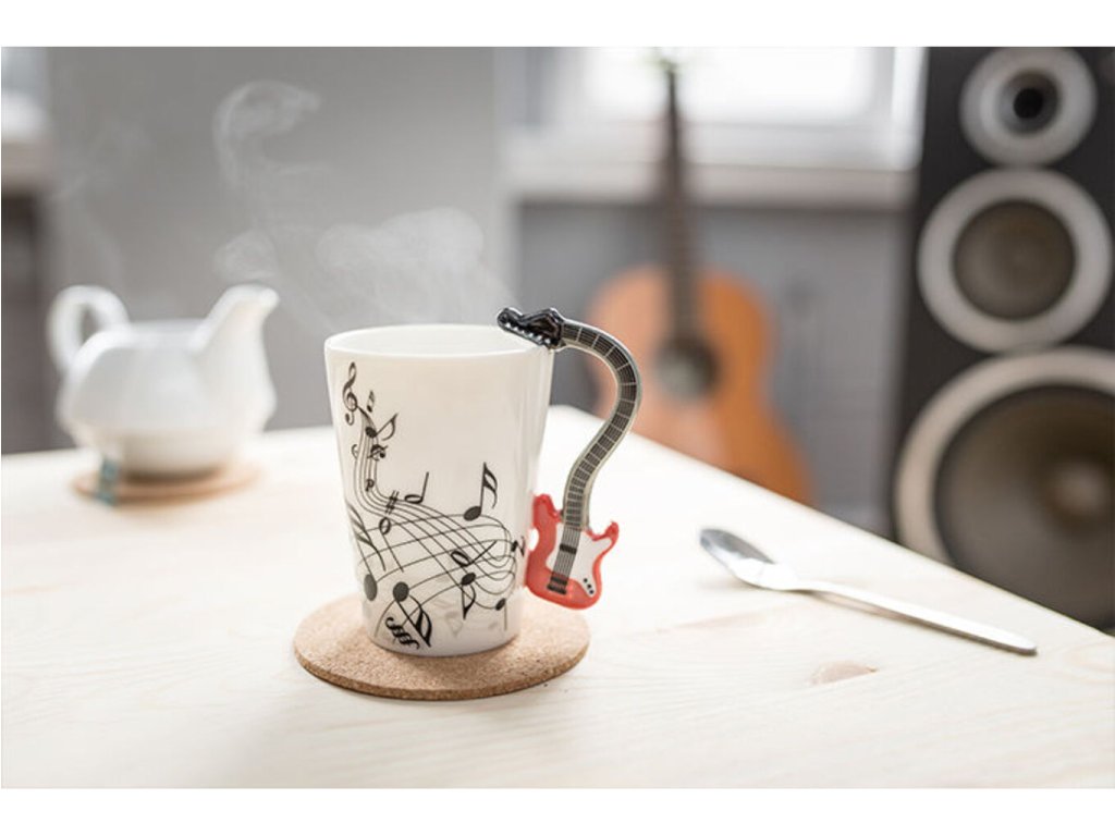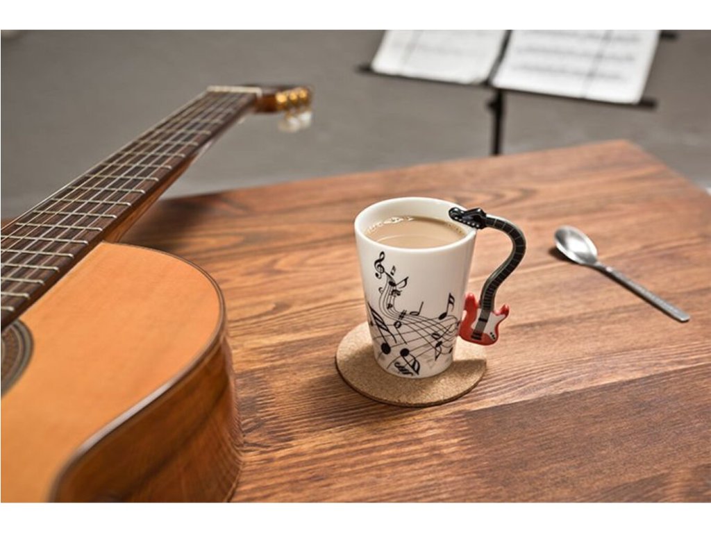 Máte niekoho známeho, kto rád hrá na gitaru? Potom mu darujte k narodeninám tento štýlový gitarový hrnček, z ktorého sa každému gitaristovi bude dobre piť. Hrnček je potlačený notami a jeho uško má tvar gitary. Tento nevšedný hrnček sa bude vo Vašej kuchyni krásne vynímať a čaj alebo káva z neho bude chutiť ako nikdy. Vychutnajte si symfonickú chuť pitia z gitarového hrnčeka. Gitarový hrnček - červený je originálny darček pre gitaristu.