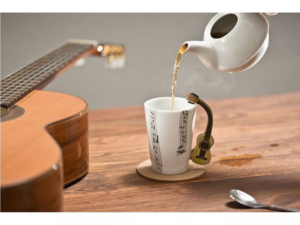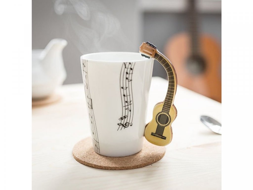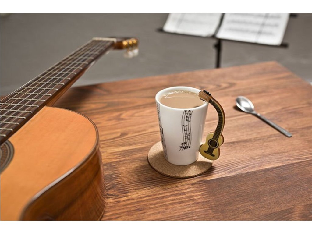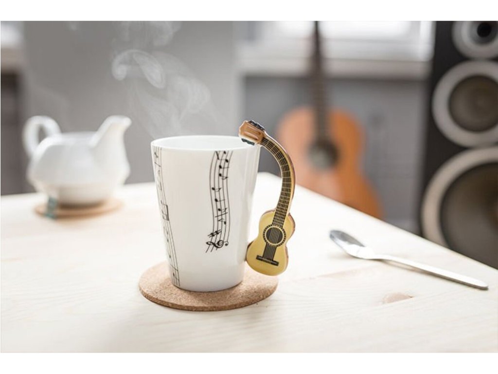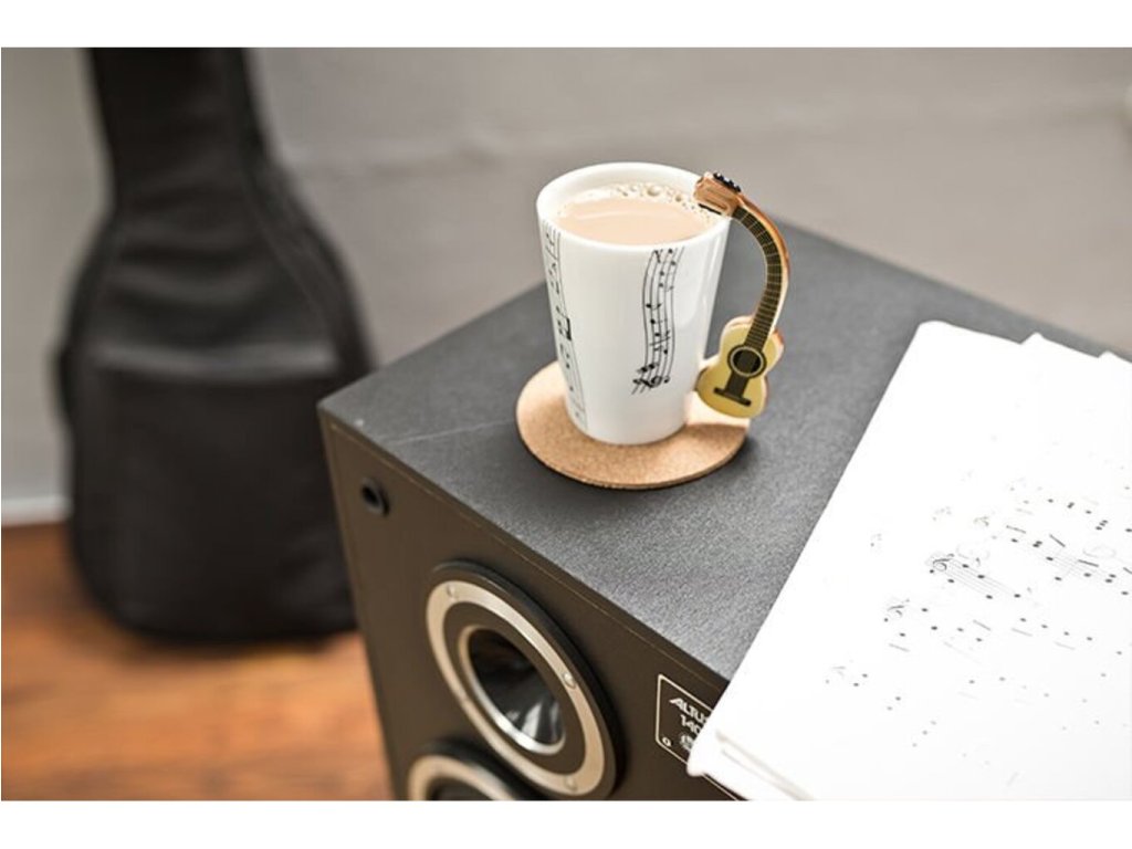 Máte niekoho známeho, kto rád hrá na gitaru? Potom mu darujte k narodeninám tento štýlový gitarový hrnček - klasik, z ktorého sa každému gitaristovi bude dobre piť. Hrnček je potlačený notami a jeho uško má tvar gitary. Tento nevšedný hrnček sa bude vo Vašej kuchyni krásne vynímať a čaj alebo káva z neho bude chutiť ako nikdy. Vychutnajte si symfonickú chuť pitia z gitarového hrnčeka. Gitarový hrnček je originálny darček pre gitaristu.