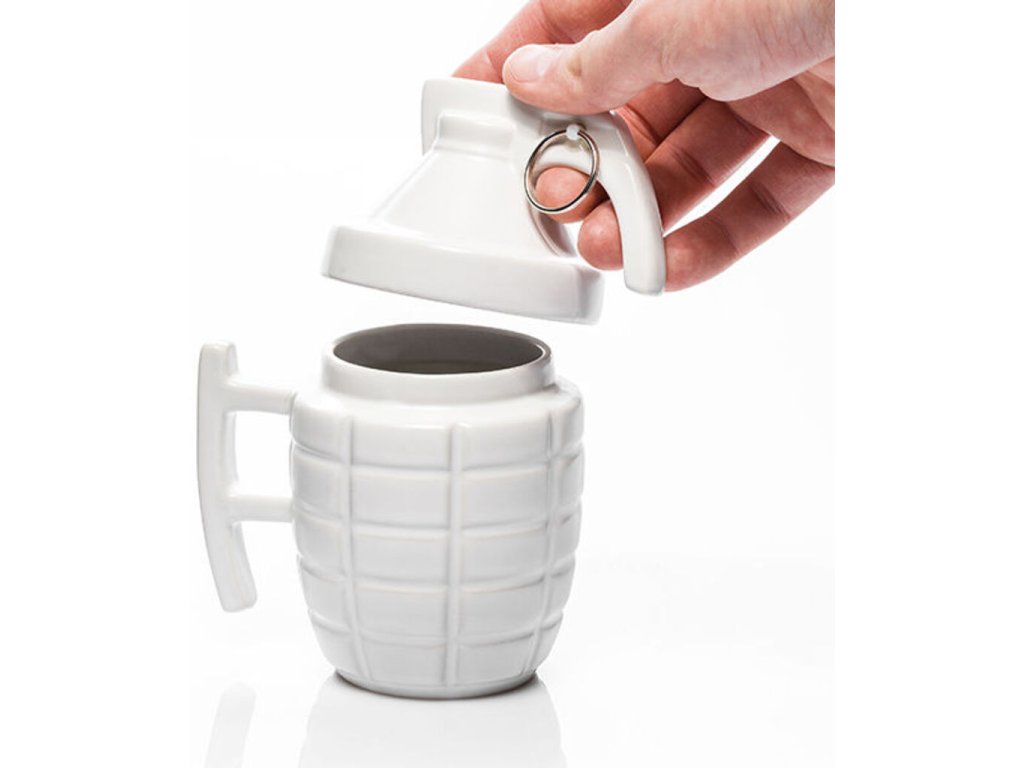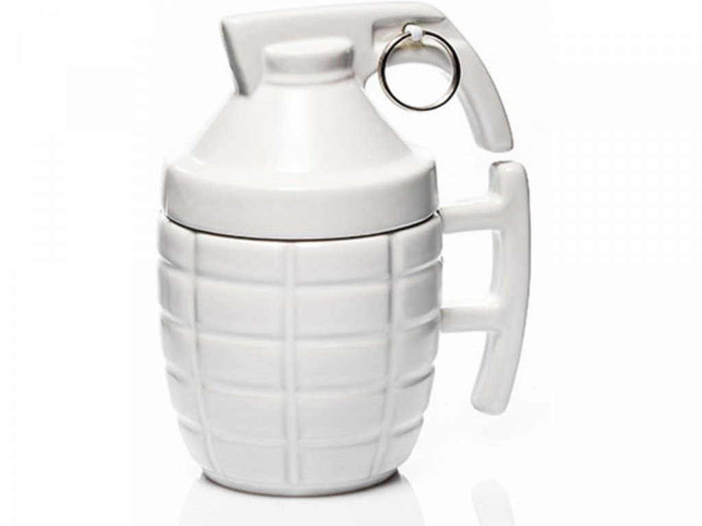 Máte doma milovníka tradičných výbušnín, pyrotechnika alebo muža so záľubou v explózii kávovej chuti?V každom z týchto prípadov máme pre vás tip na originálny darček. Originálny hrnček v tvare granátu s viečkom poteší každého poriadneho chlapa. Káva alebo iný obľúbený nápoj získa s týmto hrnčekom novú explóziu chutí. Granátový hrnček s viečkom v bielej farbe predstavuje originálny darček pre každého pána.
