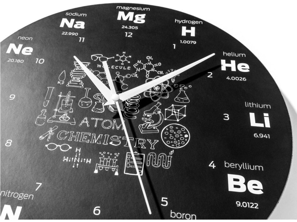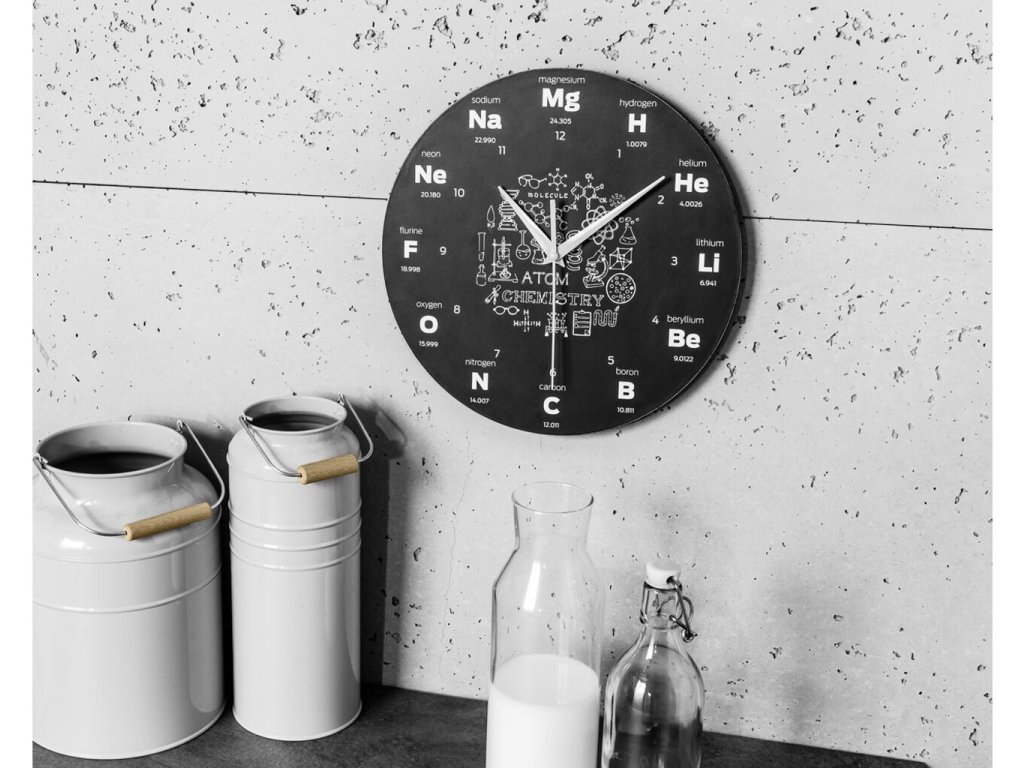 Hodiny pre chemika sú originálne hodiny ako stvorené pre každého malého či veľkého bádateľa, ktorý je fascinovaný chemickými reakciami. Môžete nimi obdarovať aj priateľov, ktorí naopak chémiu neznášali a chcete si z nich len jednoducho vystreliť a naštvať ich! To sa Vám zaručene podarí. Našťastie ale nepotrebujú byť inžiniermi chémie, aby vedeli určiť, koľko hodín práve je. Čierne okrúhle hodiny majú namiesto číslic vyobrazené chemické prvky s latinskými názvami. Originálne hodiny v čiernej farbe s tichým mechanizmom Vám budú slúžiť mnohé hodiny.