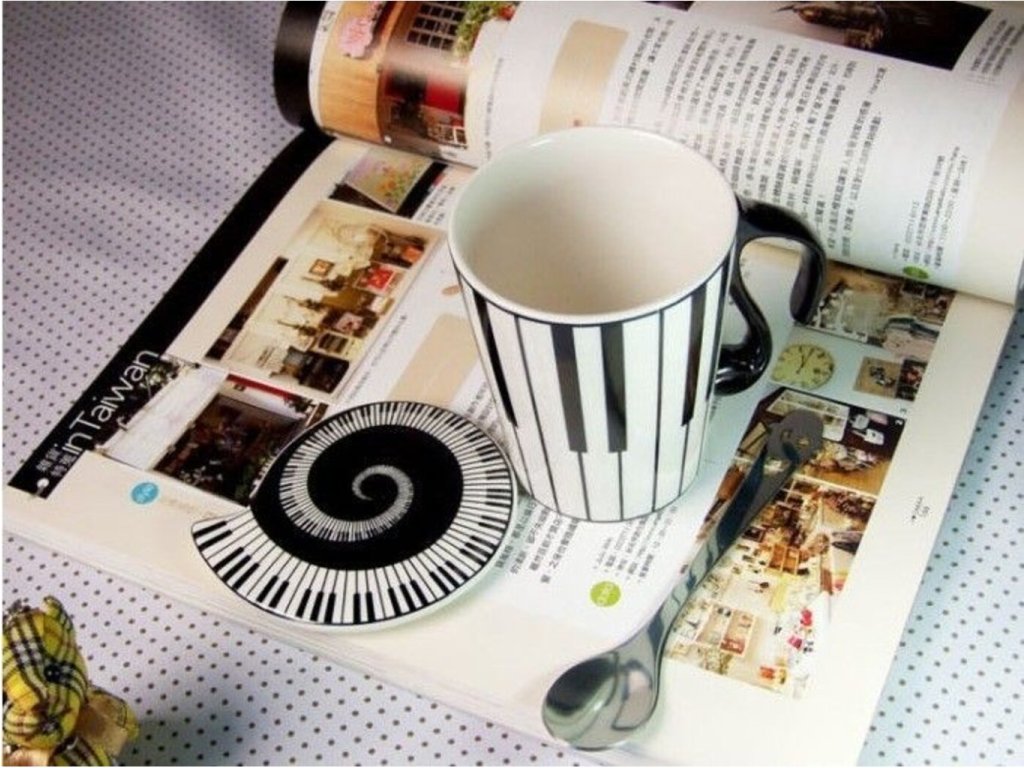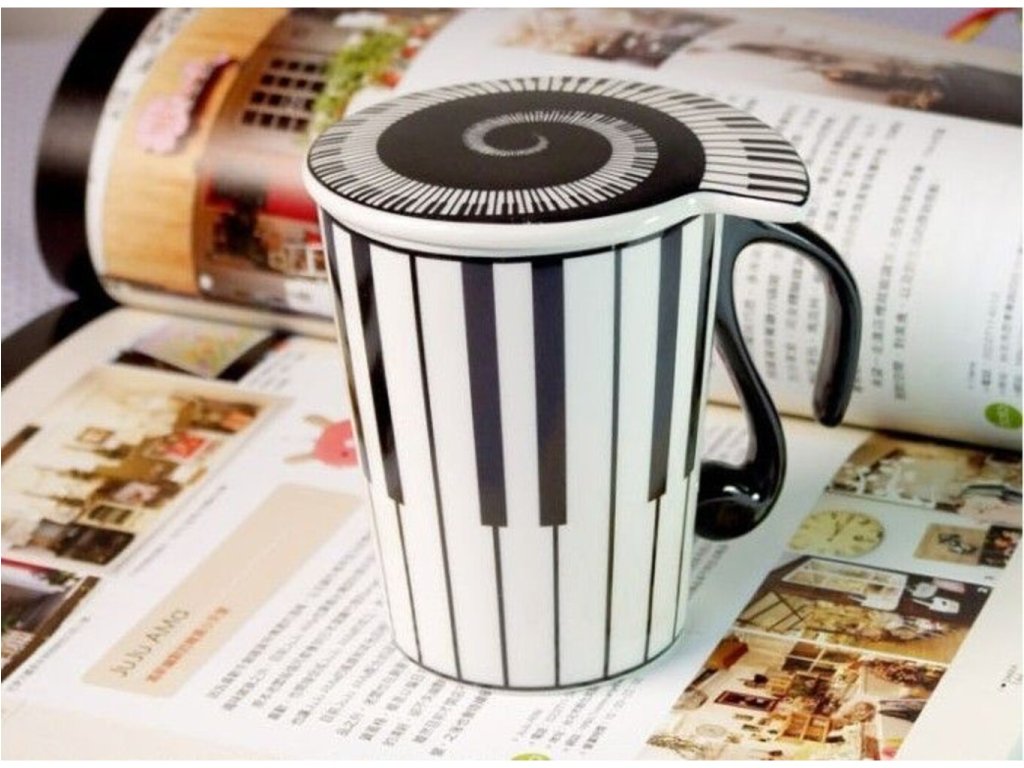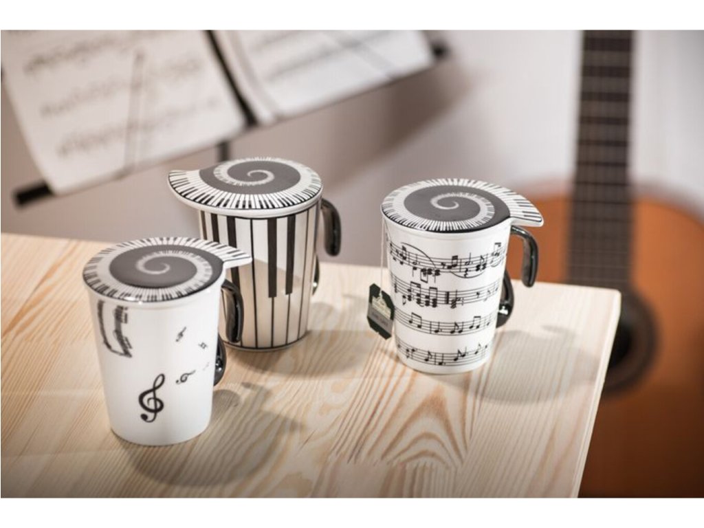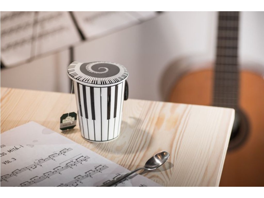 Máte známeho pianistu a chcete mu urobiť radosť netradičným darčekom? Tento klavírový hrnček bude nielen ozdobou kuchyne, ale aj veľkou inšpiráciou pre každého pianistu. Doprajte si harmonické ráno s lahodným čajom, v tomto jedinečnom hrnčeku, ktorý je potlačený notami a pianovými symbolmi. K hrnčeku je tiež krásna pokrievka, aby Vám čaj rýchlo nevychladol. Po takomto dobrom ráne budú Vaše hudobné koncerty ako symfonická rozprávka. Klavírový hrnček je originálny darček pre pianistu.