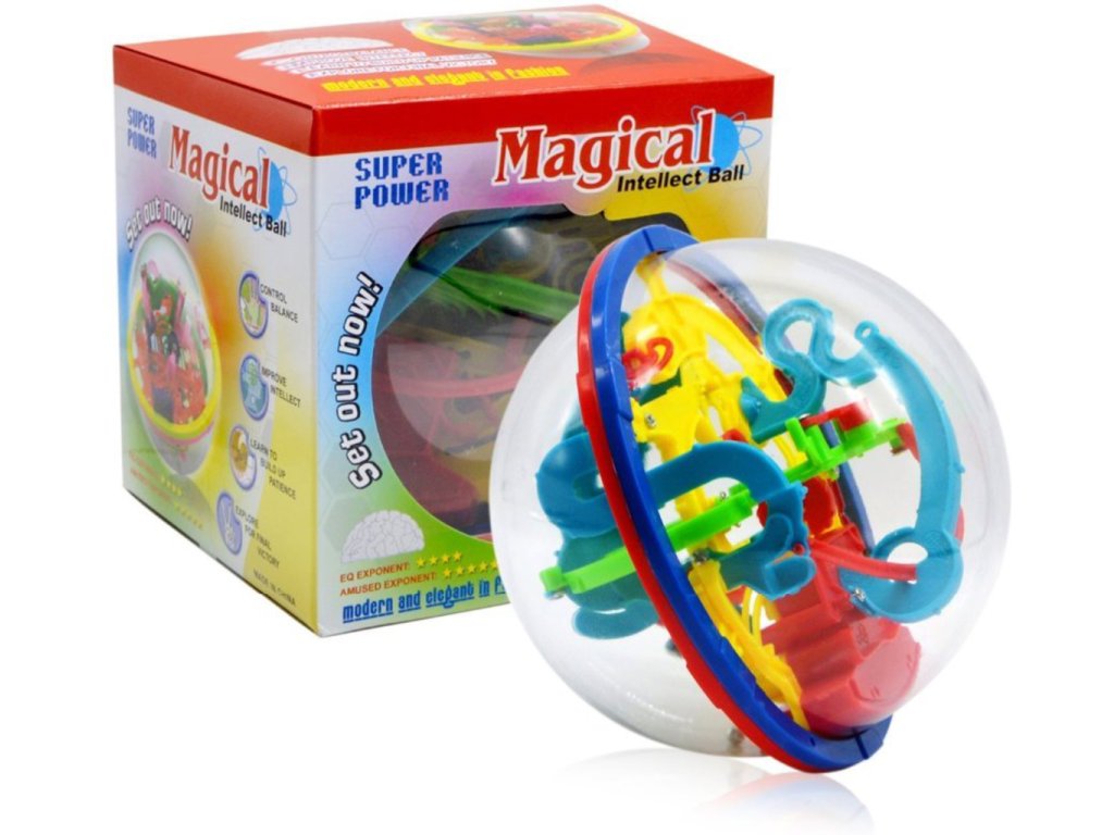 Podnetné prostredie je jednou zo základných potrieb vášho dieťaťa. Nechajte ho učiť sa a rozvíjať si zručnosti s touto jedinečnou inteligentnou hračkou. V priehľadnej guli sa ukrýva 100 zapeklitých prekážok, ktorými je potrebné transportovať malú guľôčku až do cieľa. Vaše dieťa sa s inteligentnou guľou výborne zabaví, precvičí si koordináciu, jemnú motoriku, pozornosť i trpezlivosť. Inteligentná guľa s prekážkovou dráhou je ideálnym darčekom pre všetky šikovné deti i dospelých s chuťou hrať sa.