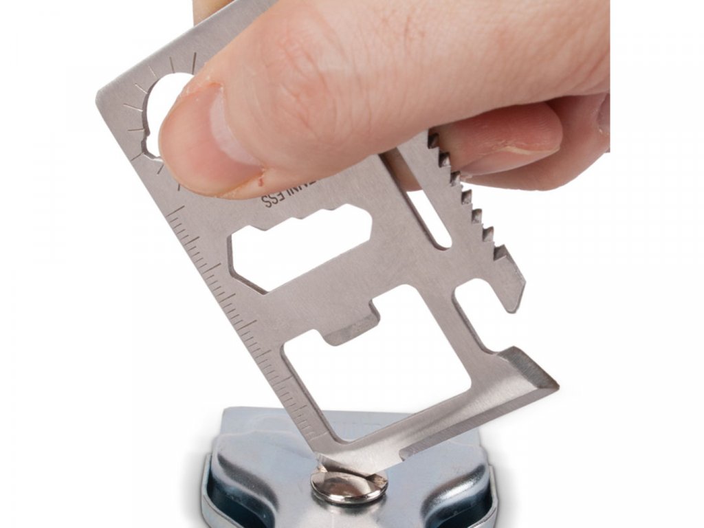 Táto skvelá multifunkčná kreditná karta sa Vám určite zapáči. Nájdete na nej mnoho rôznych otváračov, ktoré Vám budú plne k dispozícii v akejkoľvek situácii. Tento originálny darček je vhodný na cesty, stanovačky, turistiky ale aj na akúkoľvek párty. Nemusíte sa pri tom báť, že sa omylom porežete, naša multifunkčná kreditná karta má svoj obal, vďaka ktorému budete v bezpečí. Karta je vyrobená z pevného materiálu, takže sa len tak rýchlo nezničí.