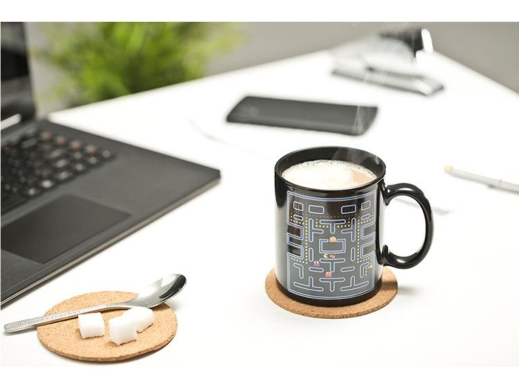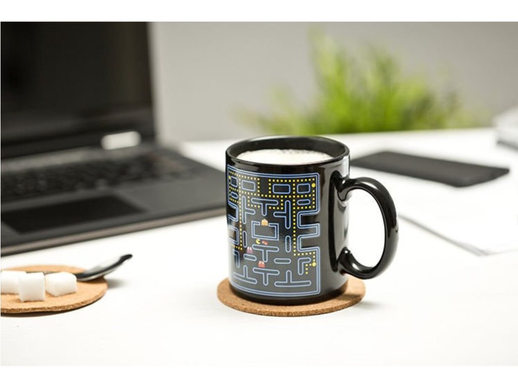 Určite každý pozná populárnu hru Pacman. Teraz môžete mať túto rozkošnú potvorku na svojom hrnčeku. Magický hrnček Pacman je potlačený motívmi tejto hry, avšak jedná sa o čarovný hrnček. Keď do neho nalejete horúcu tekutinu, obrázok sa zmení. Presne ako v hre, bude Pacman utekať labyrintom pred potvorami a pojedať guľôčky. Každé ráno môže byť zábavné s týmto magickým hrnčekom. Potešte svojich blízkych. Magický hrnček Pacman je originálny darček pre milovníkov tejto hry.