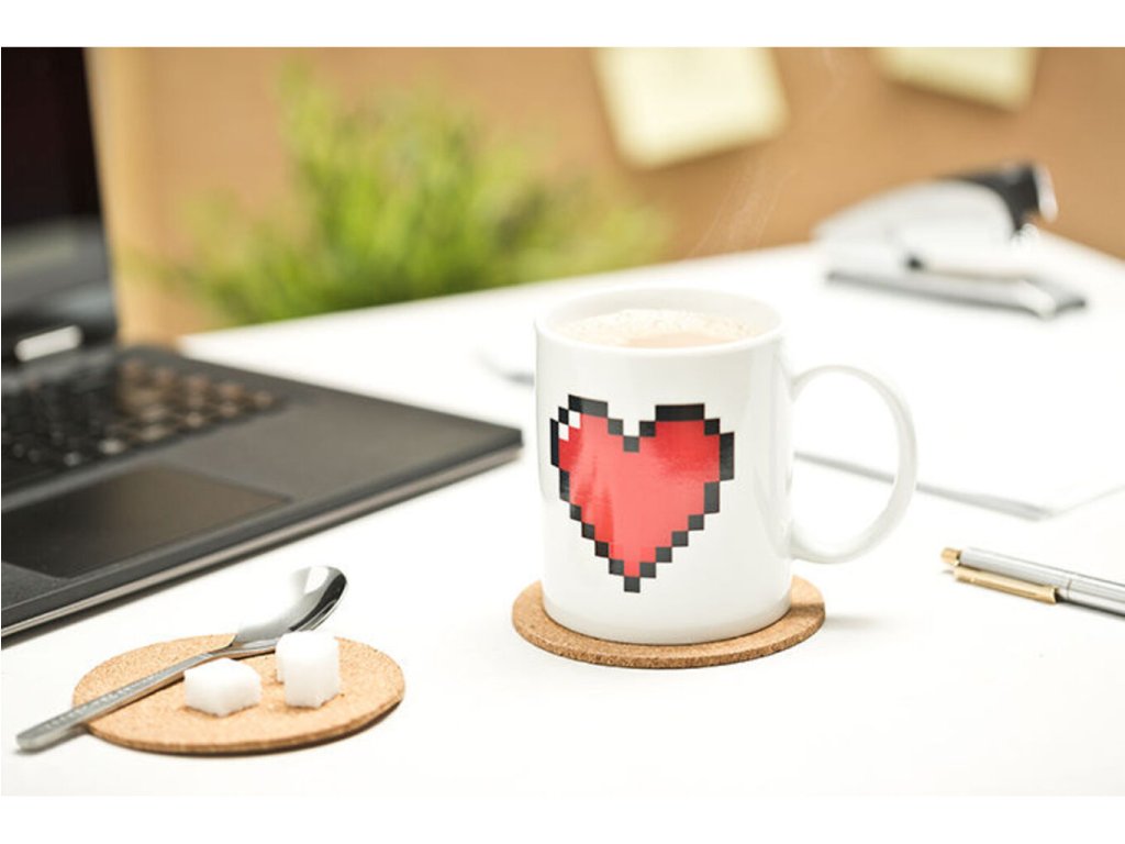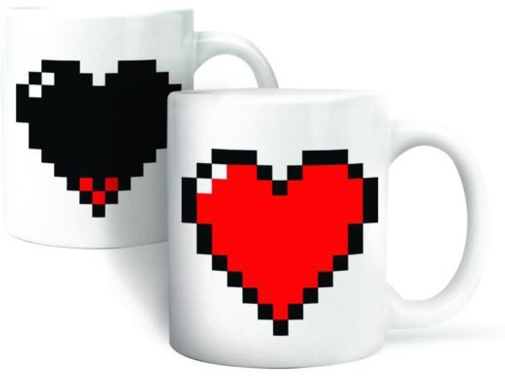 Poprajte svojej láske dobré ráno, týmto krásnym pixelovým hrnčekom srdce. Krásny zamilovaný hrnček poskytuje veľké prekvapenie. Pixelové srdiečko, ktoré sa po naplnení hrnčeka horúcou tekutinou pekne začervená a rozžiari Váš deň. Pixelový hrnček srdce je tiež ideálny darček pre Vašich počítačovo nadaných partnerov či partnerky, ktorým chcete spríjemniť ranné pitie kávy. Pixelový hrnček srdce je originálny darček pre zamilovaných.