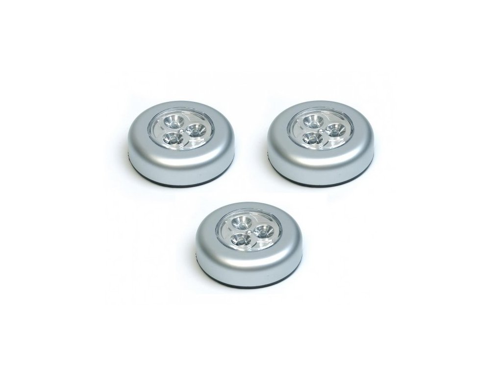 Vstávate skoro ráno a nechcete budiť svojho partnera pri chystaní vecí do práce? Máme pre Vás riešenie. Samolepiaca lampička 3 LED strieborná je skvelým pomocníkom do domácnosti. Lampičku môžete jednoducho nalepiť z vnútornej strany skrine hore a kedykoľvek budete potrebovať si môžete posvietiť. Dióda je napájaná pomocou AAA batérií. Balené v blistri. Samolepiaca lampička 3 LED strieborná sa zapína veľmi jednoducho. Stačí ľahko zatlačiť na prostrednú časť lampičky a svetlo je zapnuté.