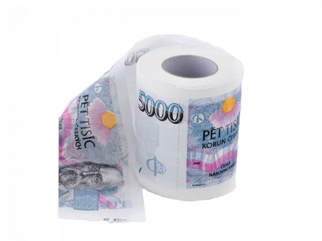 Kto by si neprial byť tak bohatý, až by nevedel čo s peniazmi. Tento pocit si môžete vyskúšať s týmto originálnym toaletným papierom 5000 Sk. Na toaletnom papieri je natlačená päťtisícová bankovka. Vyskúšajte si, aké to je byť boháčom a utierať sa peniazmi. Tento vtipný toaletný papier vyčarí úsmev na tvári každému. Toaletný papier 5000 Sk je originálny darček na wc.