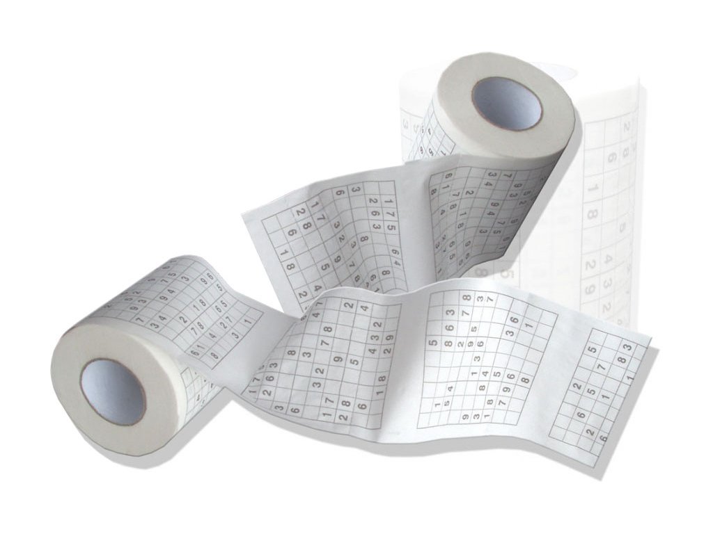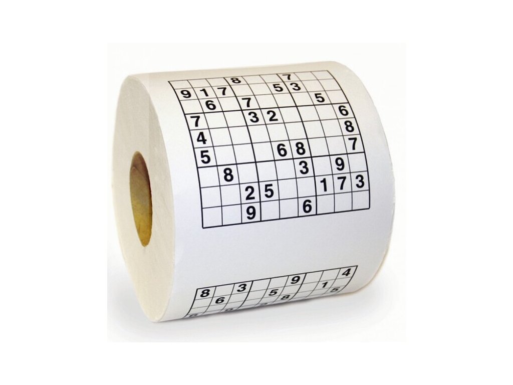 Zdá sa vám sedenie na toalete ako zbytočná strata času? V tom prípade iste oceníte tento originálny a zábavný toaletný papier s potlačou sudoku. Skráťte si čas lúštením. Vašu rodinu i návštevy iste poteší takéto príjemné prekvapenie priamo na toalete. Keď doma uvidíte niekoho pobehovať s perom v ruke, buďte si istý, že sa práve hlási potreba. Toaletný papier so sudoku predstavuje skvelý darček pre každého, kto sa na toalete nudí.