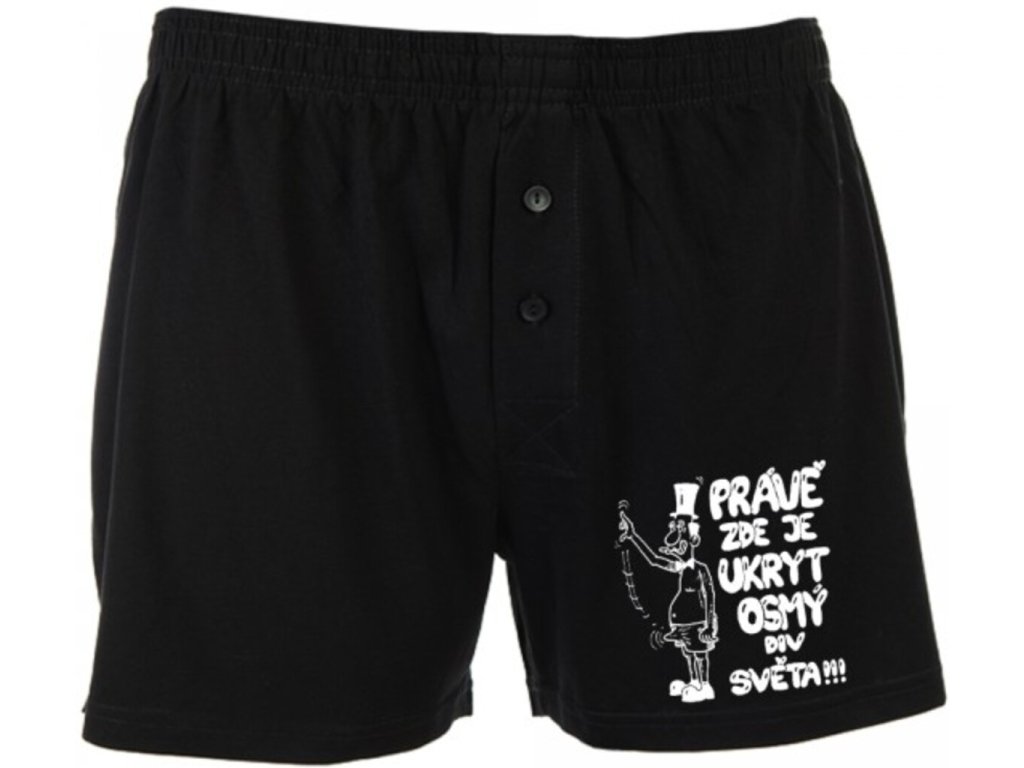 Urobte si zo svojho partnera trochu srandu a darujte mu tieto humorné trenírky - Ôsmy div sveta. Trenírky sú potlačené vtipným obrázkom a nápisom, nad ktorým sa určite usmeje každý muž so zmyslom pre humor. Len si dávajte pozor, aby mu tento ôsmy div sveta nestúpol moc do hlavy. Trenírky sú vyrobené z príjemného materiálu a sú v čiernej farbe. Trenírky - Ôsmy div sveta, sú originálnym darčekom pre mužov.