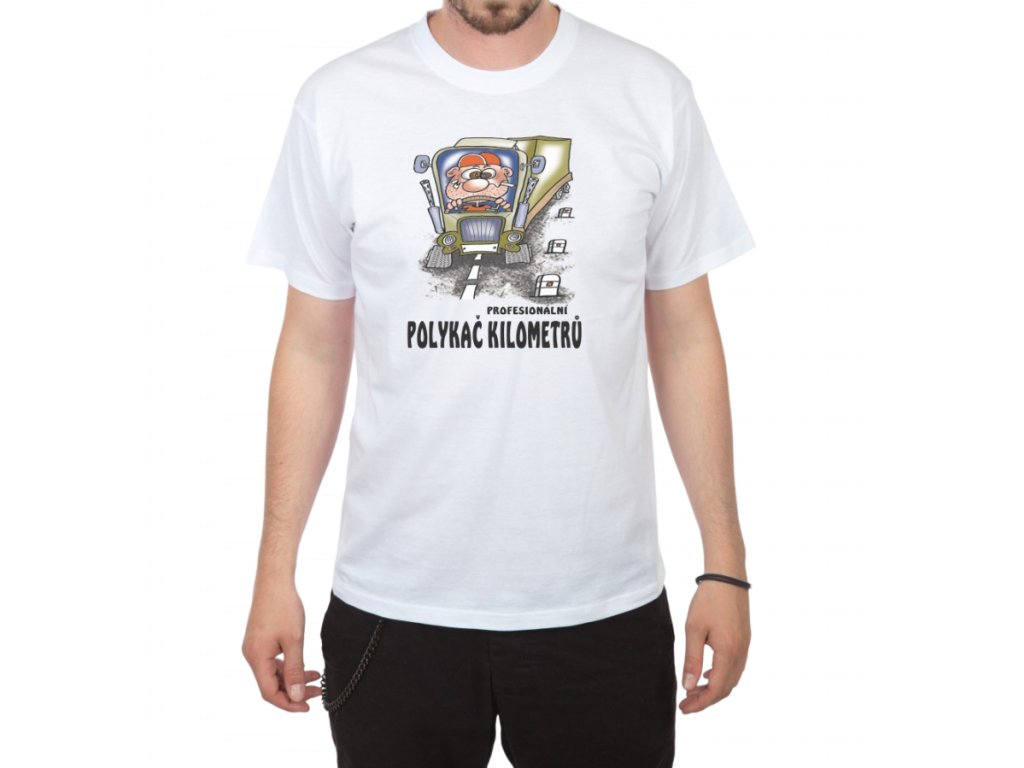 Toto tričko s humorným obrázkom a nápisom vyčarí úsmev na tvári každému. Tričko je vyrobené z bavlny, má okrúhly výstrih a dvojité prešitie výstrihu, rukávov a dolného lemu. Tričko - Profesionálny hltač kilometrov zaručene pobaví svojím originálnym a vtipným obrázkom, ktorý zaručene zdvihne náladu. Darujte toto veselé tričko kamarátovi alebo nejakému vodičovi a urobte mu radosť. Tričko - Profesionálny hltač kilometrov je originálny darček k narodeninám.