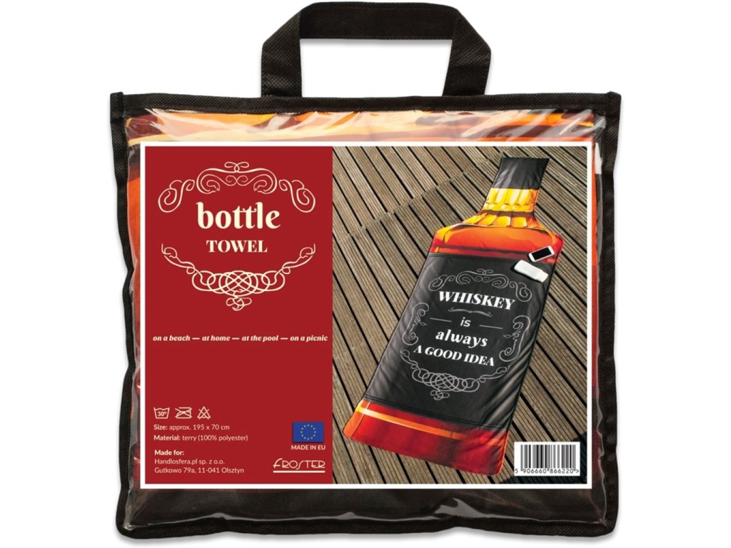 Pitie whisky je jednoducho znovu na vzostupe! Prečo to neukázať týmto štýlovým uterákom v tvare fľaše whisky? Tento uterák je z kvalitne šitého polyesteru, ktorý výborne saje vodu. Uterák je preto ideálny na pláž, k bazénu, na piknik, alebo proste na používanie doma. V neposlednom rade je uterák zabalený v štýlovom balení s uškami pre jednoduchú prepravu. Ideálny darček pre všetkých milovníkov whisky.