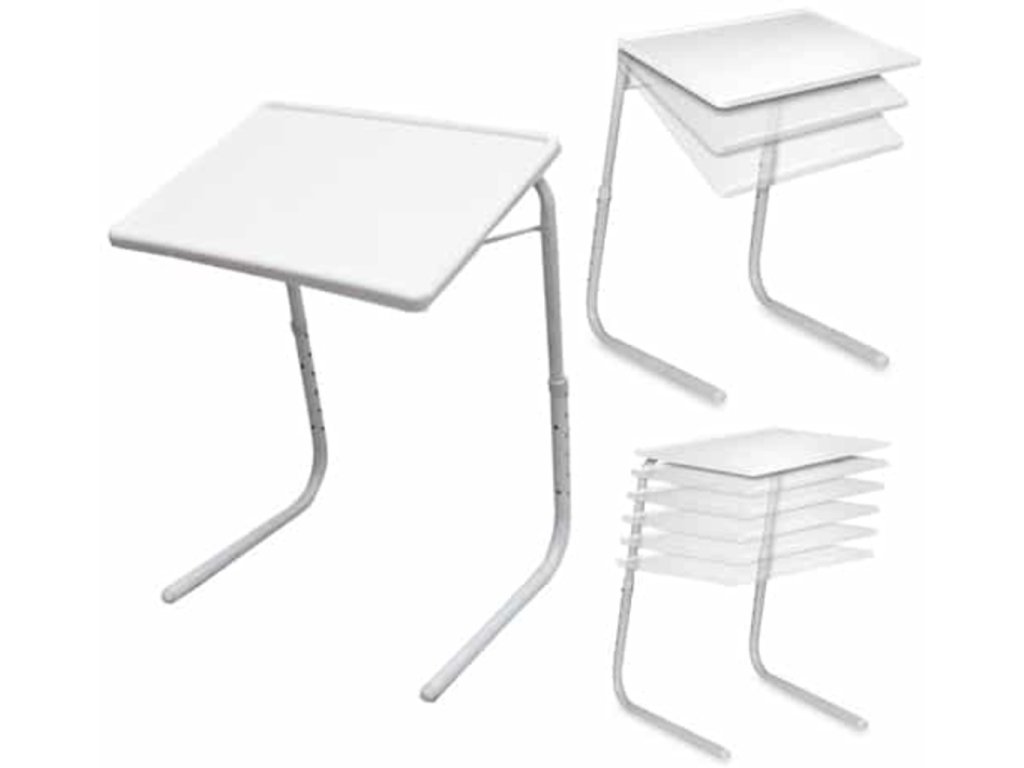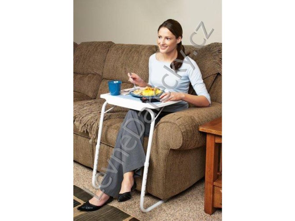 Aj vy radi jete napríklad pri televízii, ale nepáči sa Vám byť skrčený v rôznych polohách pri držaní taniera? Radi sedíte na gauči a nechcete mať spálené nohy od prehriateho notebooku? Radi pracujete z pohodlia vášho kresla či postele? Potom je pre Vás ideálnym riešením náš viacúčelový stolček! Možno ho nastaviť do rôznych výšok, a ak vám prekáža, jednoducho ho zložíte a schováte napríklad pod posteľ. Tento darček určite ocení každý člen rodiny. Navyše ho môžete bez problémov použiť pri vysnívaných raňajkách v posteli.