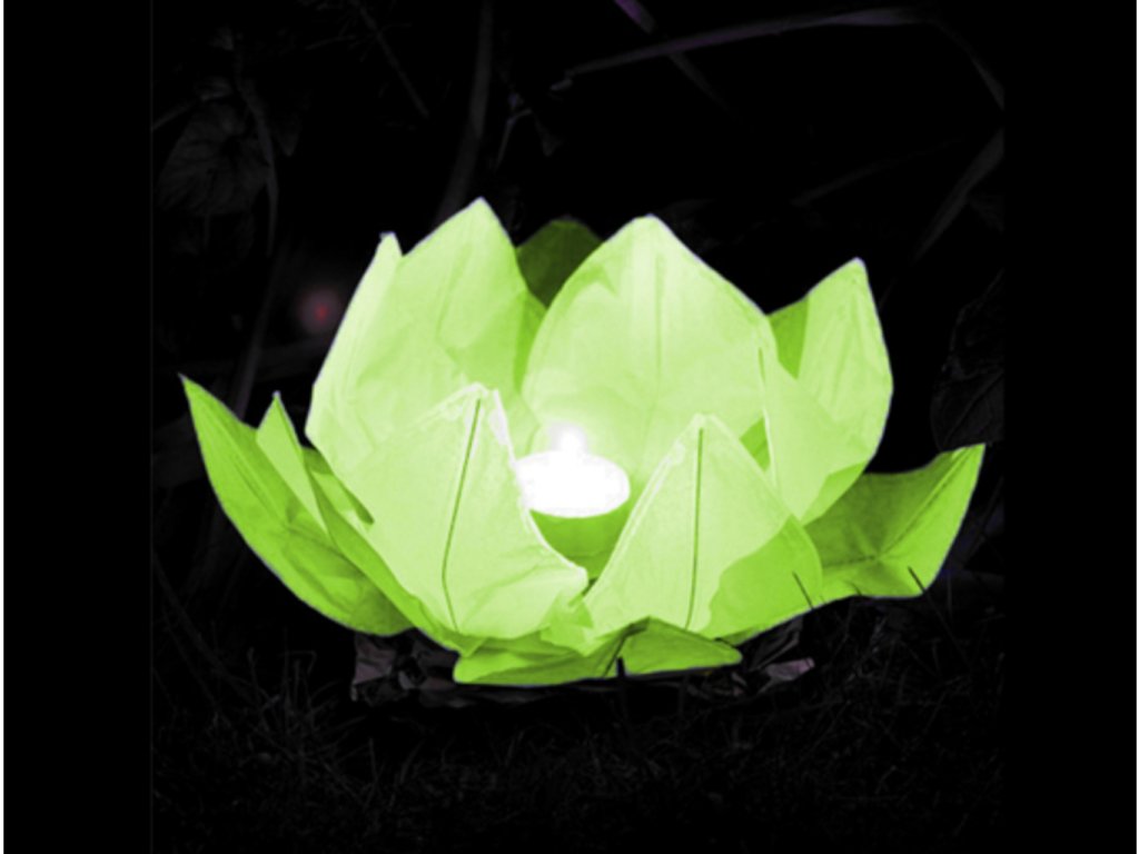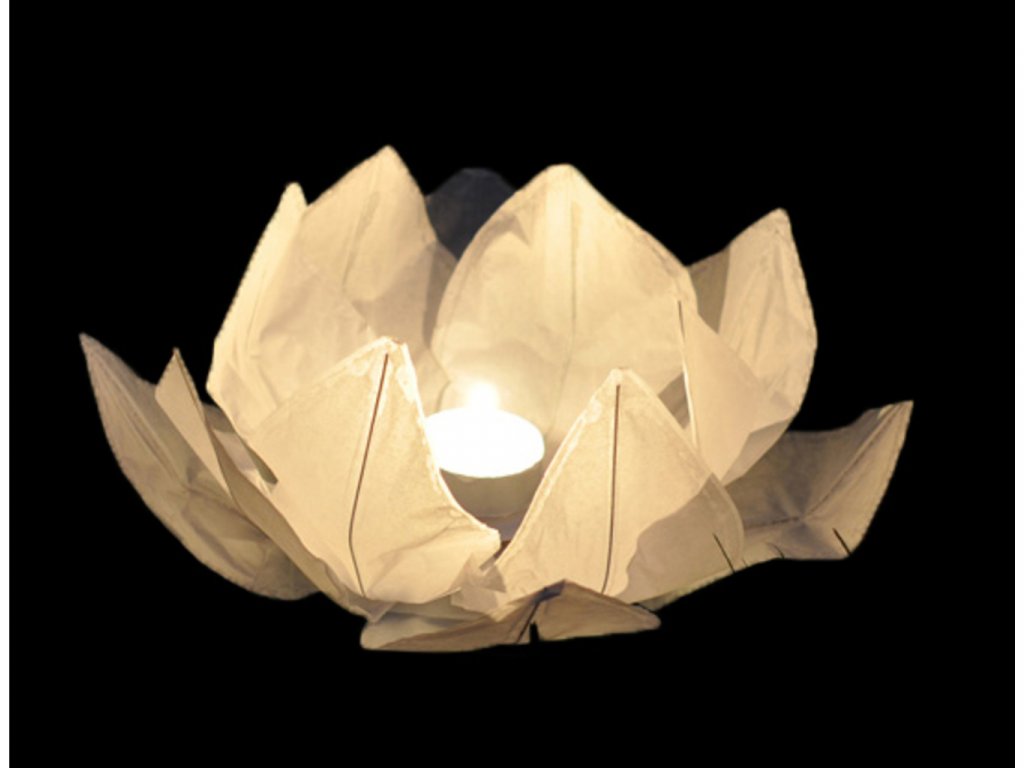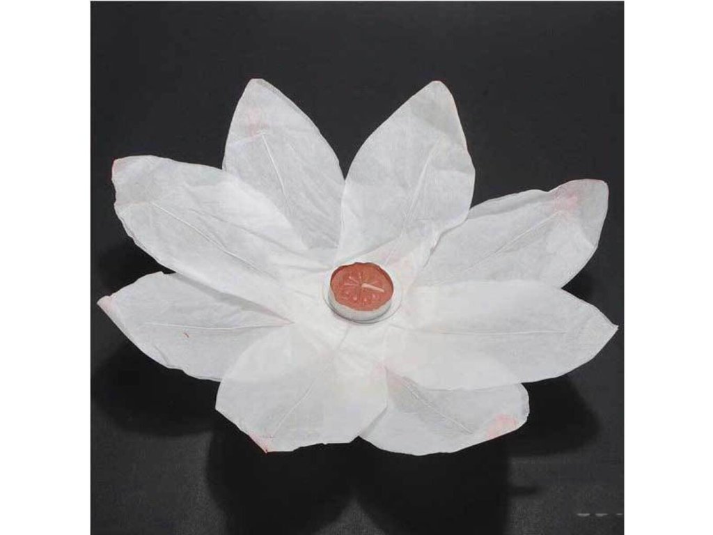 Zapáľte knôt, počkajte 5 – 10 sekúnd, kým sa sviečka rozhorí a opatrne položte lampión na hladinu. Horúci vzduch z horiaceho plameňa udrží lampión v objemnom tvare a postará sa o to, aby sa neprevrhol do vody.