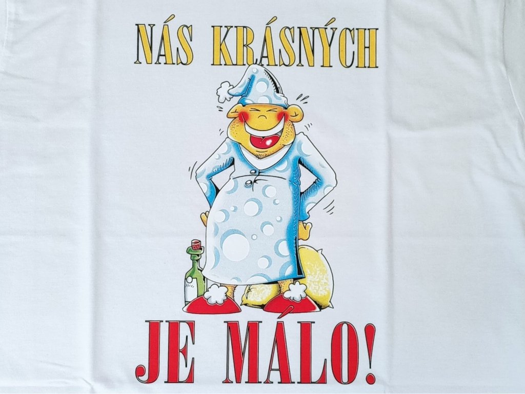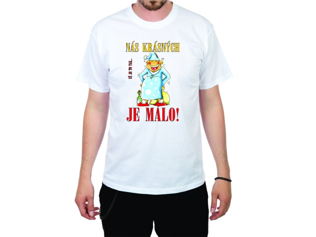 Určite máte kamaráta so zmyslom pre humor. Ak sa blíži jeho sviatok, pripravte mu tento vtipný a nezabudnuteľný darček. Toto tričko určite dokonale vystihne jeho osobnosť a pobaví všetkých naokolo. Ide o kvalitné bavlnené biele tričko s obrázkom vysmiateho chlapíka v nočnej košeli a nápisom „Nás krásnych je málo“. Tento darček ho zaručene poteší, bavlnené tričko je praktický aj zábavný darček. Tričko je dobré na polihovanie na gauči, na spanie, aj na prácu v dielni a na záhrade. Môžete ho pokojne darovať aj žene a reakcia na seba určite nenechá dlho čakať.
