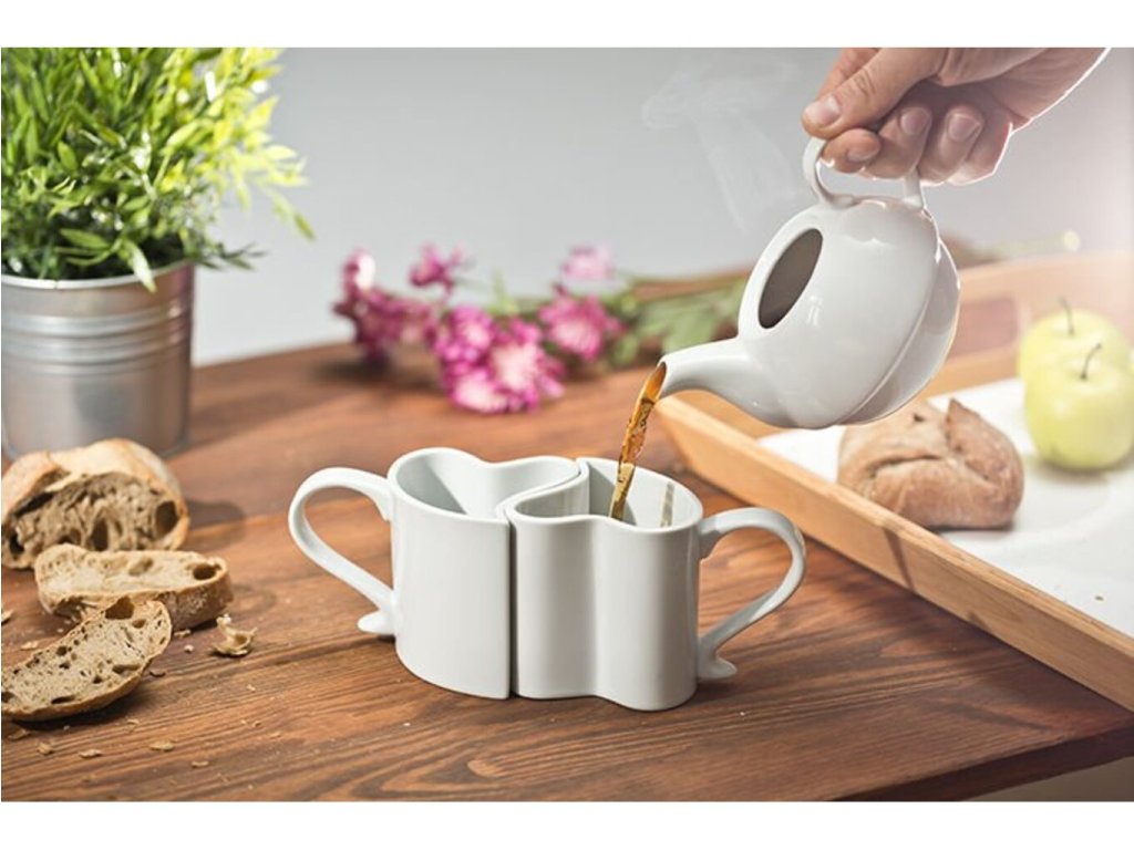 - Dva do seba zapadajúce (ako Jing a Jang) hrnčeky v tvare srdca