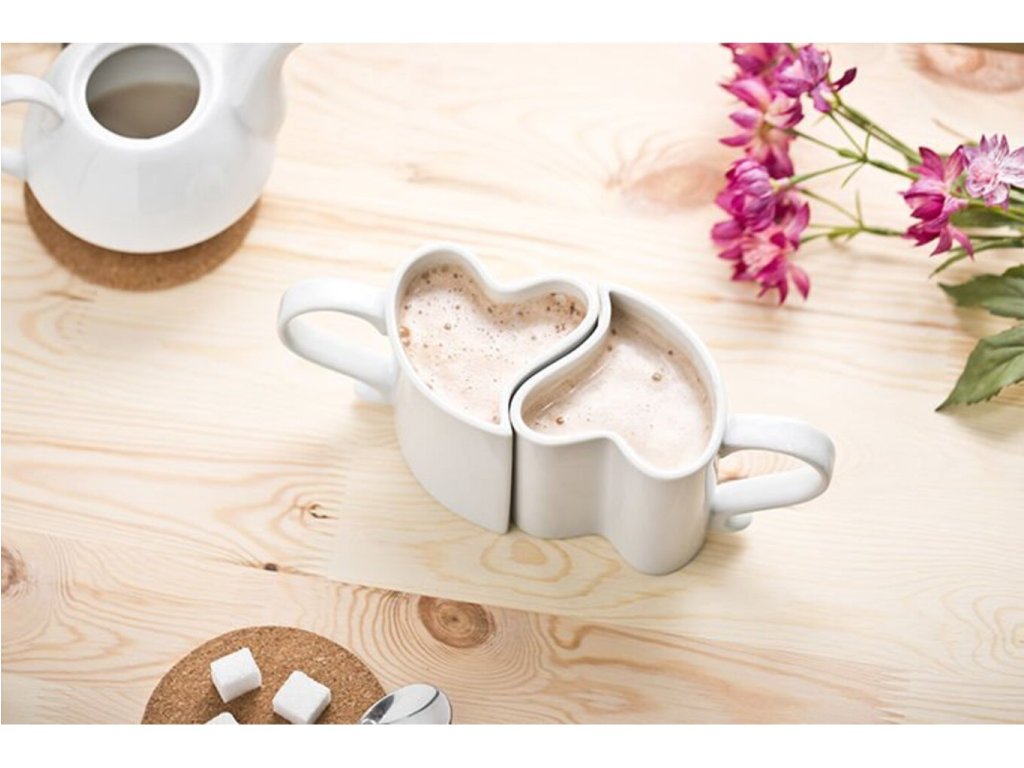 Lahodnú chuť kávy alebo čaju si môžete vychutnávať vo dvojici a dokonca v rovnakých hrnčekoch, ktoré do seba perfektne zapadajú. Presne tak, ako sa vy perfektne dopĺňate so svojou spriaznenou dušou, tak isto sa dopĺňajú aj tieto zamilované hrnčeky - biele. V balení sa nachádzajú dva krásne hrnčeky v tvare srdiečok, ktoré sú vyrobené z prvotriedneho porcelánu. Zamilované hrnčeky - biele sú originálny darček pre zamilovaných a všetky spriaznené duše.