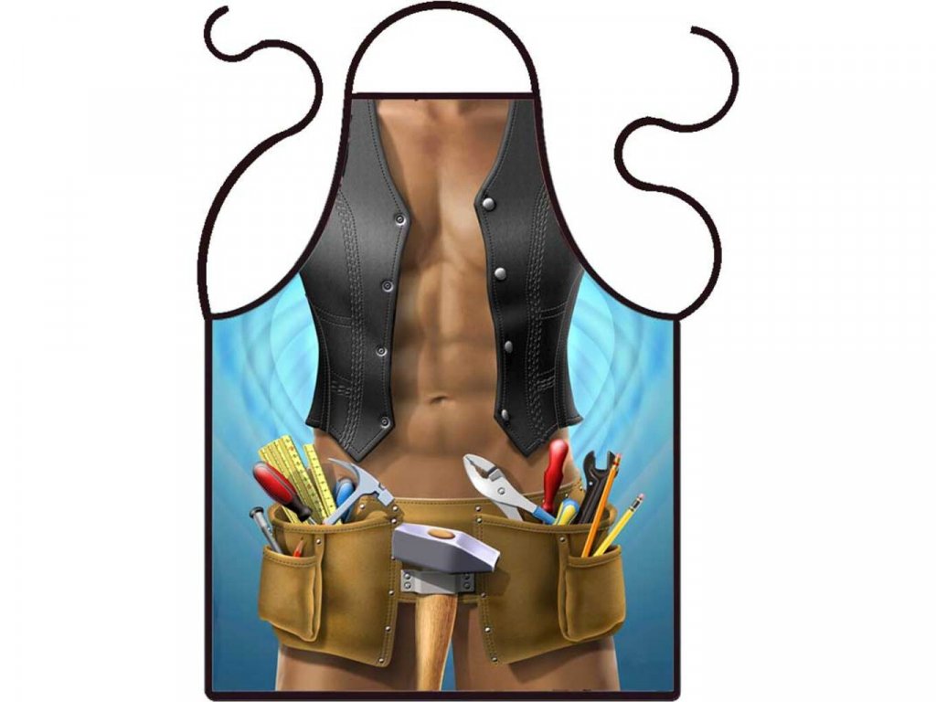 Chcete mať doma, priamo vo svojej kuchyni silného chlapa s poriadnou výbavou? Žiaden problém! Darujte tomu svojmu vtipnú zásteru s motívom sexi montéra a okamžite sa premení na idol ženského pokolenia. Zástera zobrazuje vyšportované mužské telo s bohatou výbavou montérskeho náradia. Určite by sa vo vašej kuchyni našlo niečo, čo by ste si mohli dať opraviť. Nepotrebovali by ste napríklad pribiť klinček na stenu?