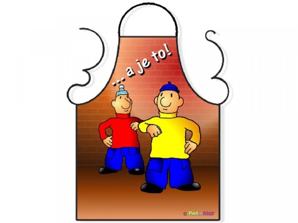 Každý určite pozná dvoch nemotorných kutilov Pata a Mata. A práve s týmito dvoma nemotornými pánmi si môžete zaobstarať humornú zásteru. Zástera Pat a Mat je vtipný darček pre každú kuchárku alebo kuchára. Ale pozor! Neberte si z týchto dvoch kreslených postavičiek príklad. Vy budete určite variť lepšie. Zástera Pat a Mat je originálny darček pre všetkých.