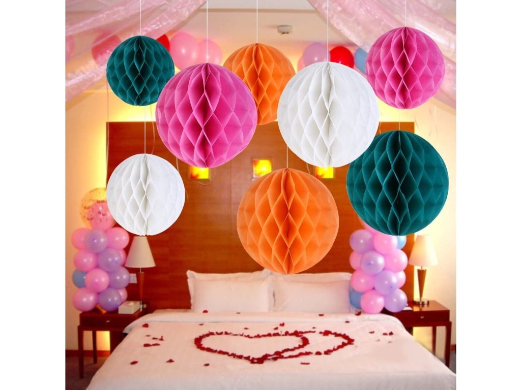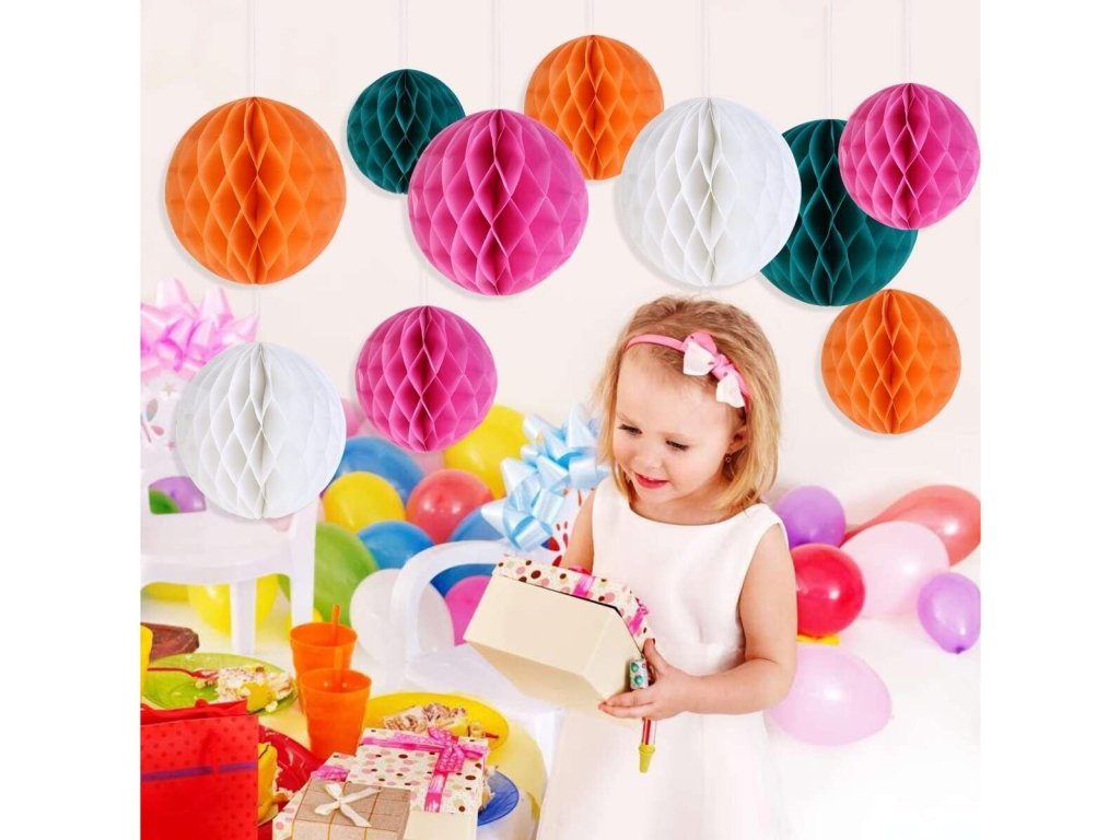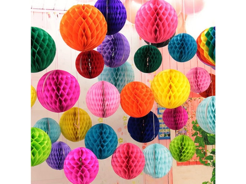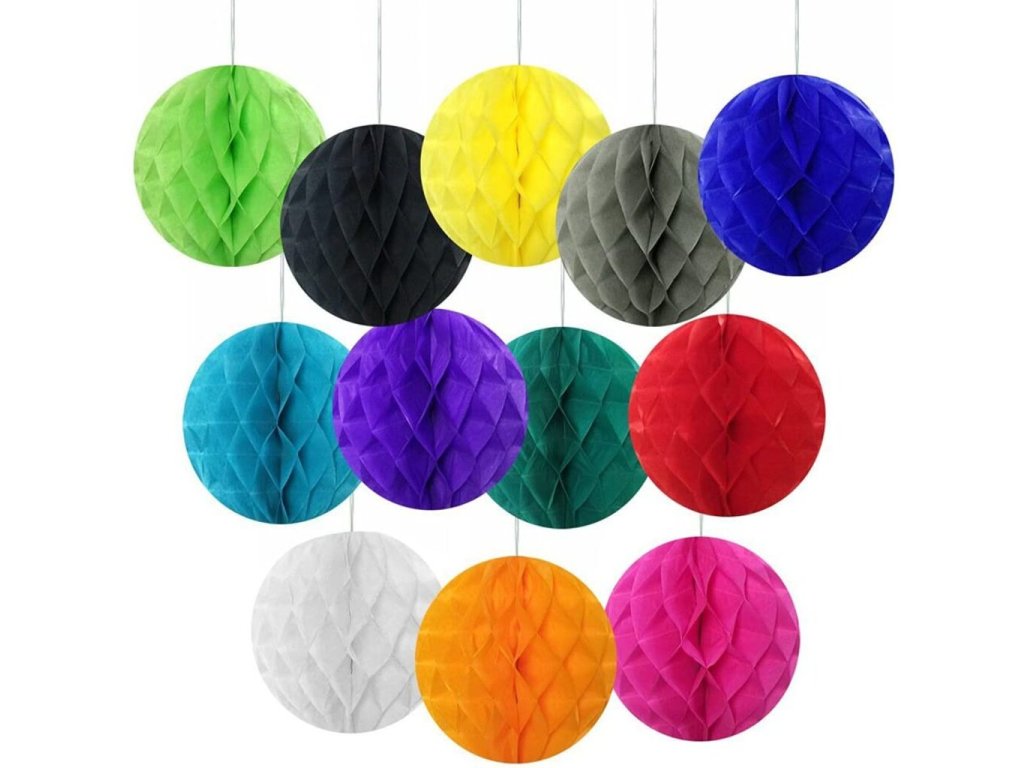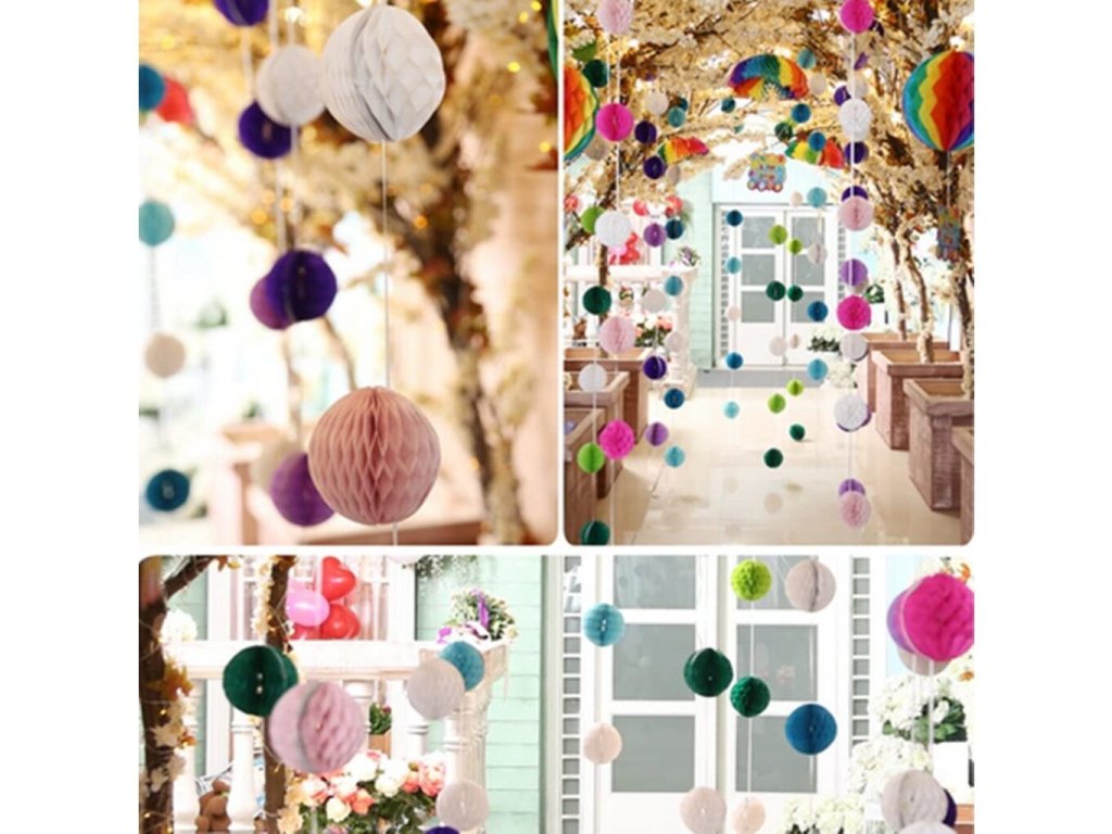 Chystáte veľkolepú narodeninovú oslavu? Ozdobte dom alebo záhradu týmito veselými závesnými dekoratívnymi guľami. Môžete si vybrať mnoho pestrých farieb, gule sú vyrobené z papiera a dokonale ozdobia záhradu alebo domácnosť. Závesné dekoratívne gule Vašu oslavu oživia a dodajú jej príjemný povzbudivý efekt v harmónii farieb. Závesná dekoratívna guľa je originálny darček a spestrenie na akejkoľvek párty.