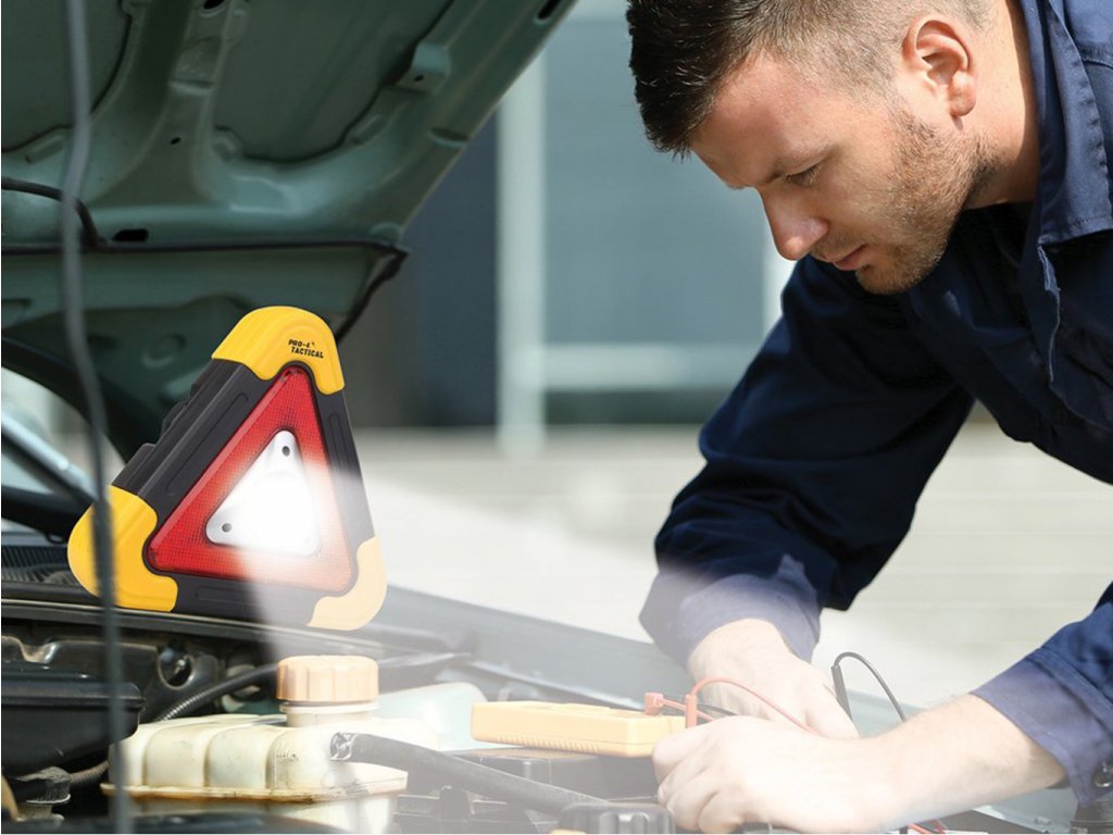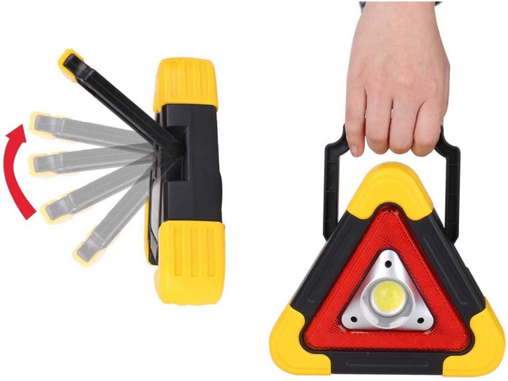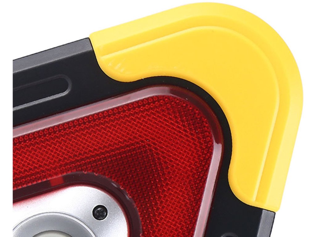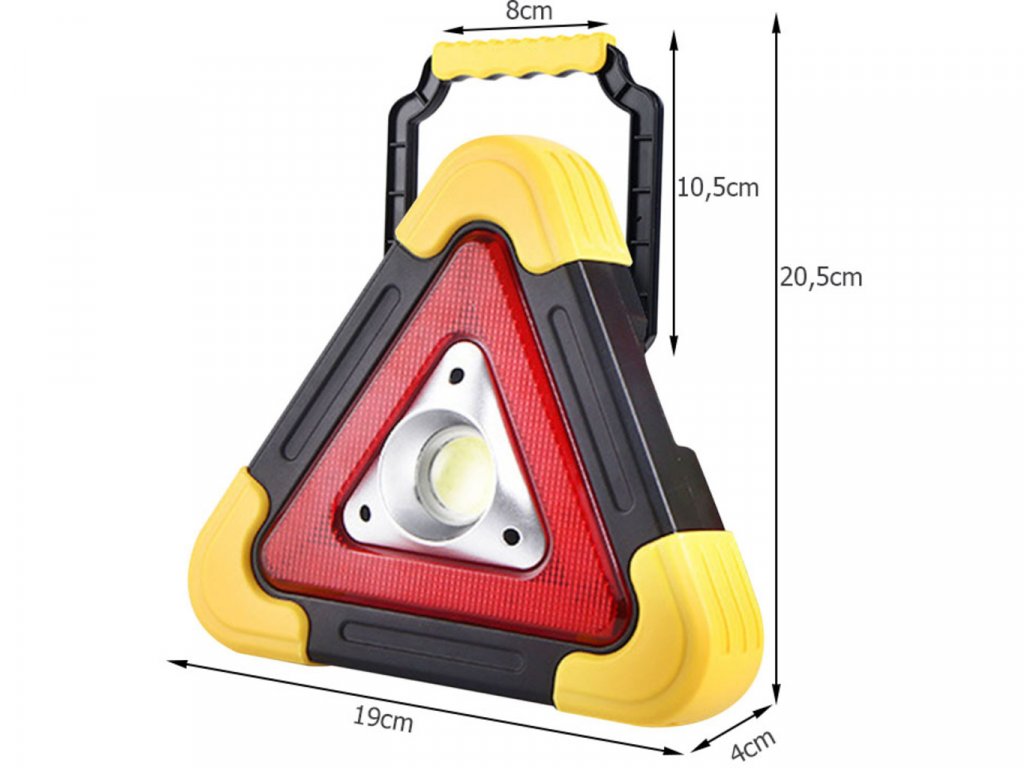Výstražný trojuholník je povinnou výbavou každého vozidla, ktoré sa pohybuje po slovenských a európskych cestách. Umiestnením za vozidlo upozorňujeme ostatných vodičov na nebezpečenstvo. Zariadenie má 3 funkcie: výstražný trojuholník, svietidlo a powerbanka. Svietidlo s COB diódou , má dva režimy svietenia: 100% a 50%. Červené výstražné svetlo má 3 režimy svietenia: stále, trvalé blikanie a dvojité blikanie. Nabíja sa USB káblom a dá sa priamo pripojiť k nabíjačke alebo do autozásuvky. Navyše slúži ako powerbanka pre rôzne zariadenia vrátane smartfónov. Okrem toho, ak sa batéria v trojuholníku vybije, dá sa ju nabiť pomocou solárneho panelu! Bol navrhnutý tak, aby bol odolný voči rôznym poveternostným podmienkam a nárazom. Je pevný a odolný. Má široký uhol otvorenia 180 stupňov, takže ho môžete umiestniť do ľubovoľného uhla, ktorý si zvolíte, alebo ho uchopiť za rukoväť a použiť ako baterku.