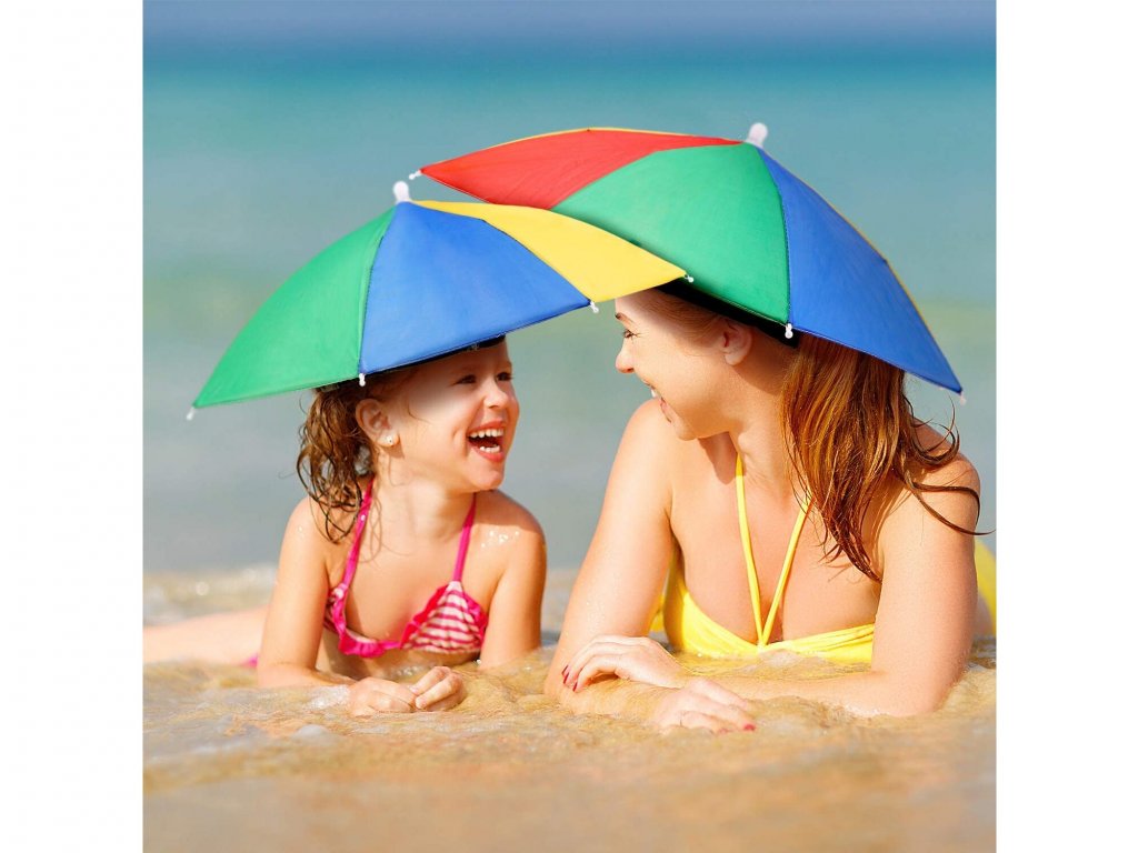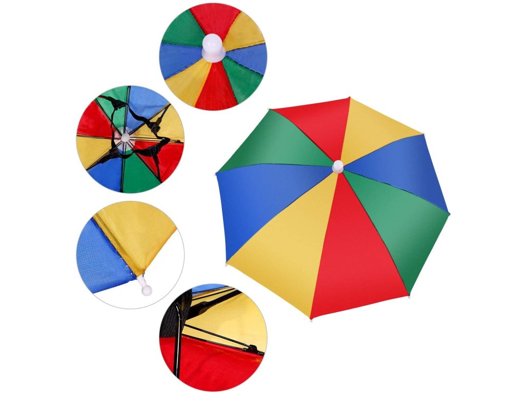 - Dáždnik na hlavu drží vďaka špeciálnej čelenke