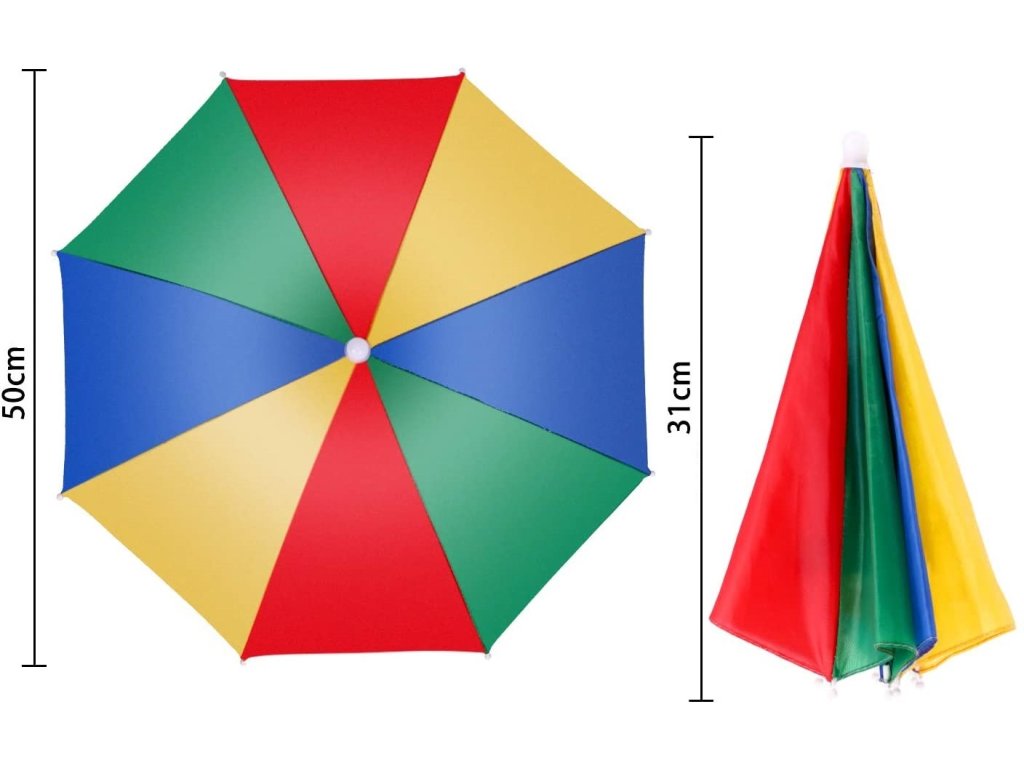 Pri daždi musíte väčšinou jednou rukou vždy držať dáždnik, čo môže byť do značnej miery obmedzujúce a nepríjemné. Prečo si však nedopriať aj v daždivom počasí pohodu, komfort a slobodu? Zaobstarajte si túto špeciálnu čelenku so vstavaným dáždnikom a razom zabudnete, čo je to držať v daždi dáždnik. Táto čelenka Vám zaručí stopercentnú slobodu v pohybe a pritom vás aj váš účes dokonale ochráni pred nepríjemnými kvapkami dažďa. Dáždnik na hlavu je originálny a praktický darček do dažďa a na rôzne športové aktivity v upršanom počasí. A navyše, vďaka jeho kompaktným a malým rozmerom ho môžete mať všade a vždy so sebou.