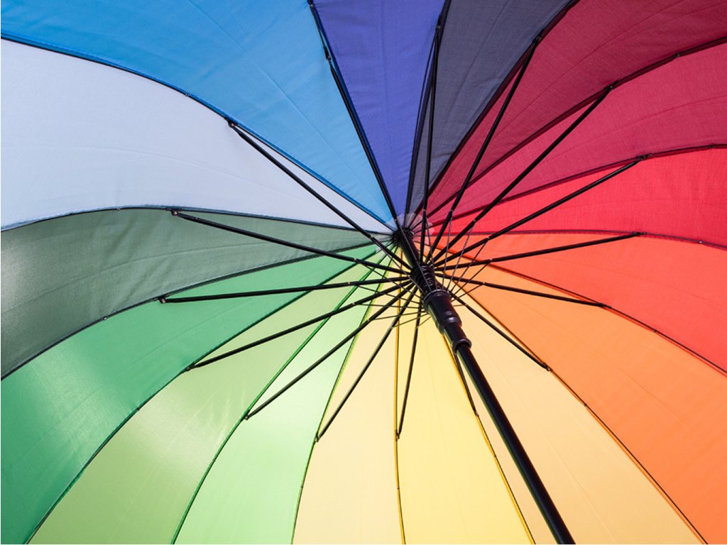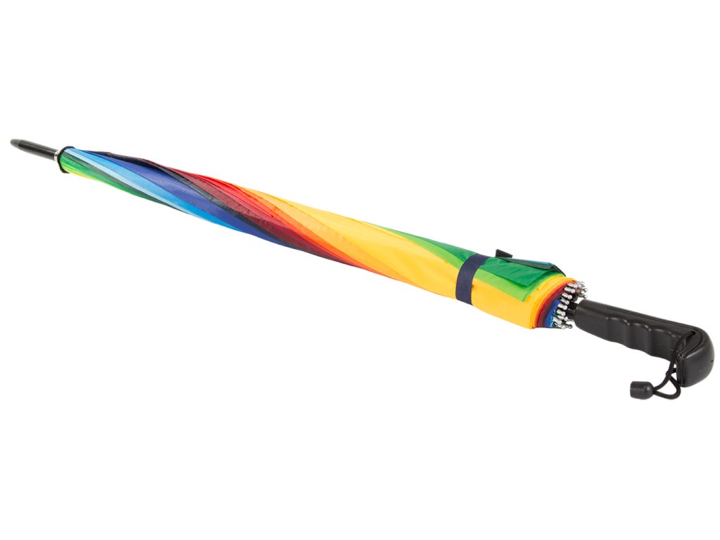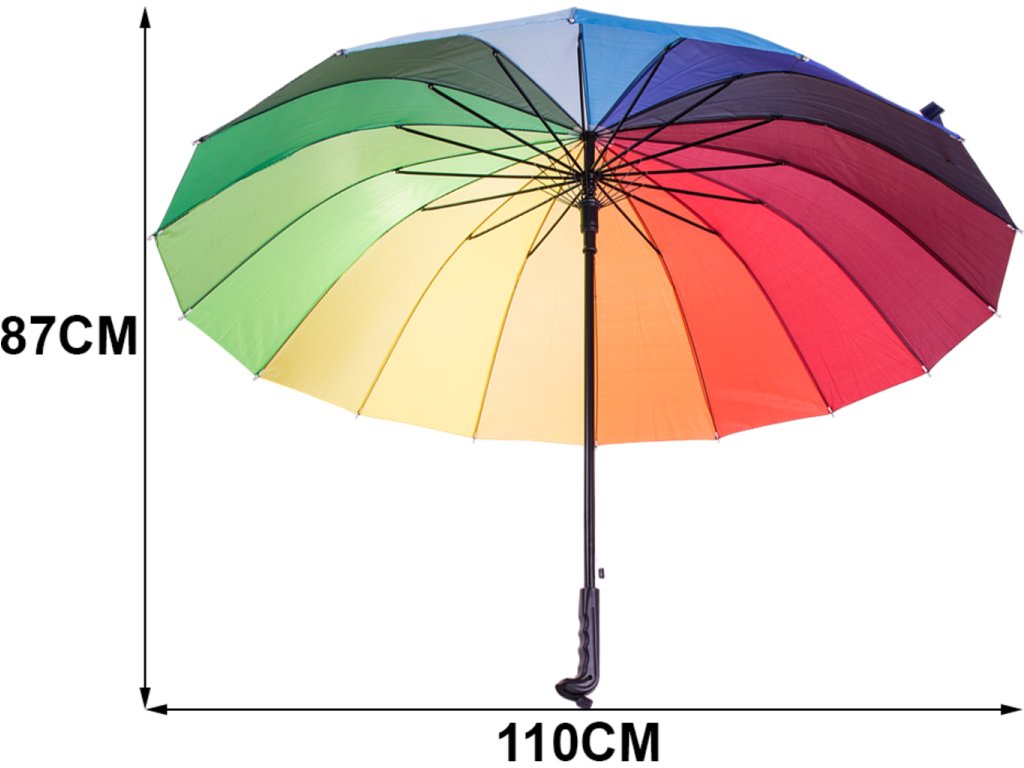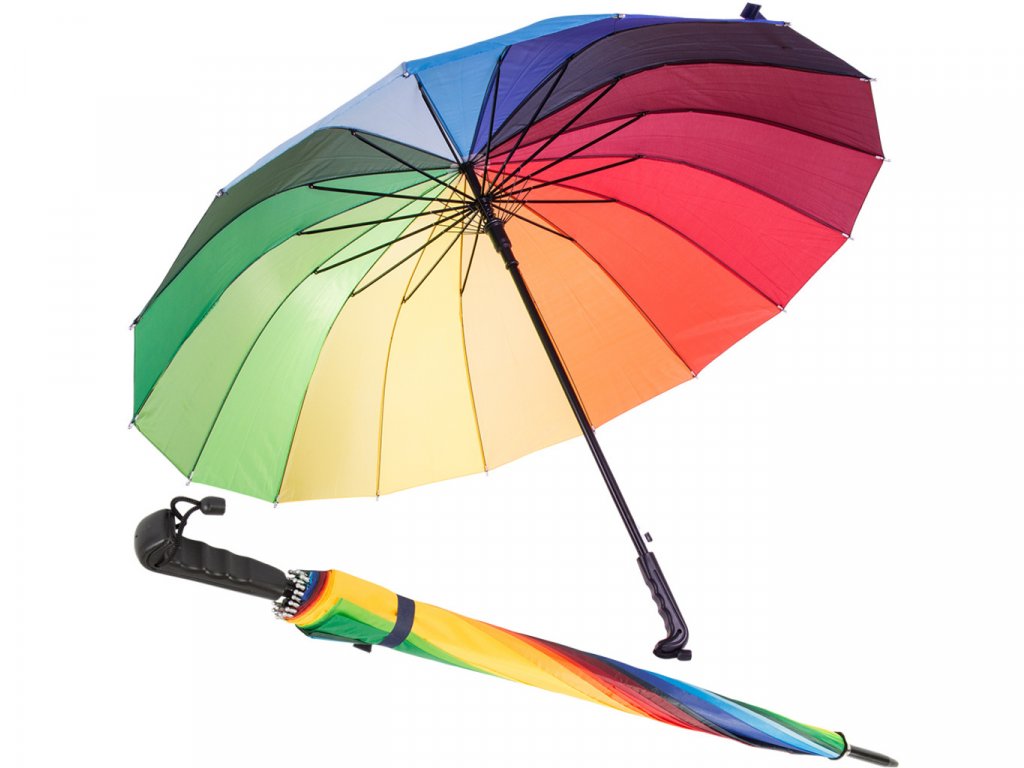 Aj v sychravom počasí si môžete zlepšiť náladu pri ceste z práce, do práce, do obchodu alebo kamkoľvek inam. Stačí si so sebou vziať dáždnik dúha, rozjasniť si tak celý deň a spríjemniť si náladu. Veselá viacfarebná varianta je vhodná skôr pre ženy. Dáždnik má protišmykovú rukoväť, preto sa veľmi dobre drží a neschádza Vám v ruke. To ocení určite každý z nás. Dáždnik dúha je skvelým pomocníkom do daždivého počasia.