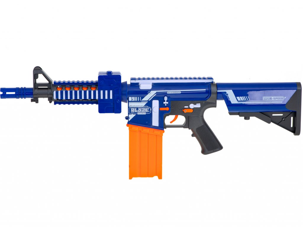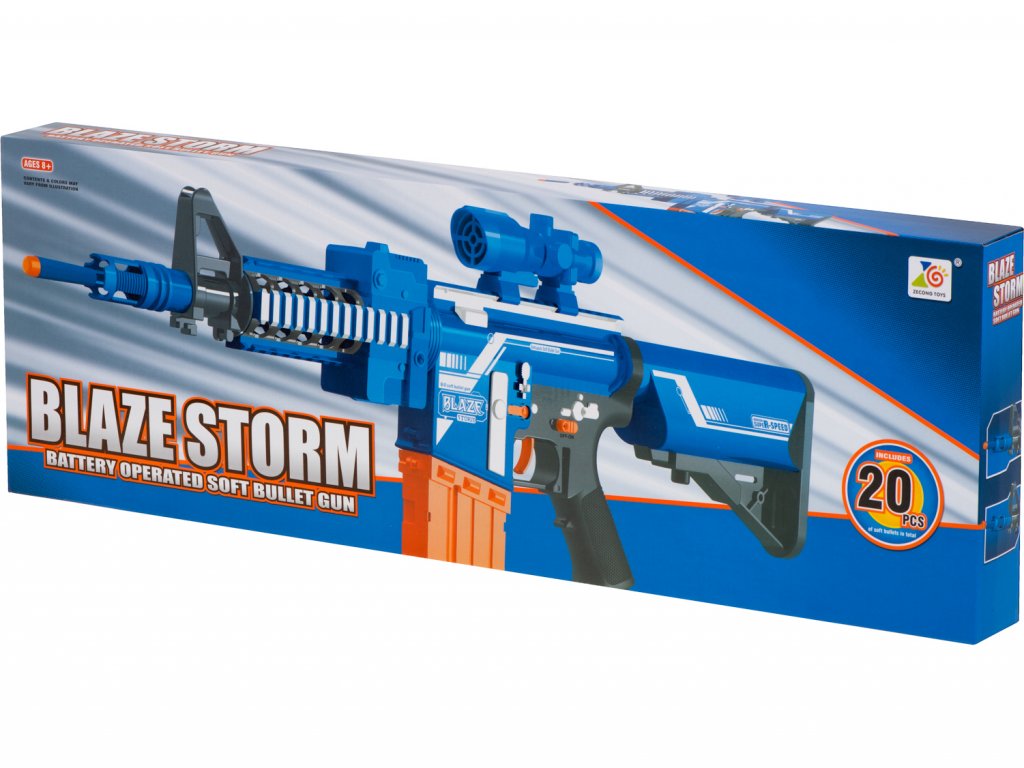 Samopal Nerf Blaze Storm + 20 nábojov si zamilujú fanúšikovia týchto hračiek aj začínajúci používatelia. Táto hračka má všetko, čo potrebujete na "zastrelenie súpera" a víťazstvo. Hračka pomáha rozvíjať koordináciu ruka-oko ako súčasť návykovej hry. Manipulácia s puškou, najmä nabíjanie zásobníka, má pozitívny vplyv na motoriku prstov. Rôzne druhy a farby textúr a reliéfov, ktoré pripomínajú hračky počítačových hier, robia hračku atraktívnou pre deti všetkých vekových kategórií. Samopal Nerf Blaze Storm + 20 nábojov poteší fanúšikov počítačových hier, ktorí môžu svoje potýčky preniesť do reálneho sveta a dokonca aj behať! Táto hra na čerstvom vzduchu podporuje motorickú koordináciu a má pozitívny vplyv na fyzické zdravie dieťaťa. Blaze Storm je skvelá hračka, s ktorou sa vaše dieťa zabaví celé hodiny. Napriek svojej veľkosti nie je ťažký, takže manipulácia s ním je jednoduchá a príjemná. Pohodlná pažba na konci pištole Blaze Storm vám umožní oprieť si ju o rameno. Pre stabilnejší výstrel je vybavená aj rukoväťou na hlavni.