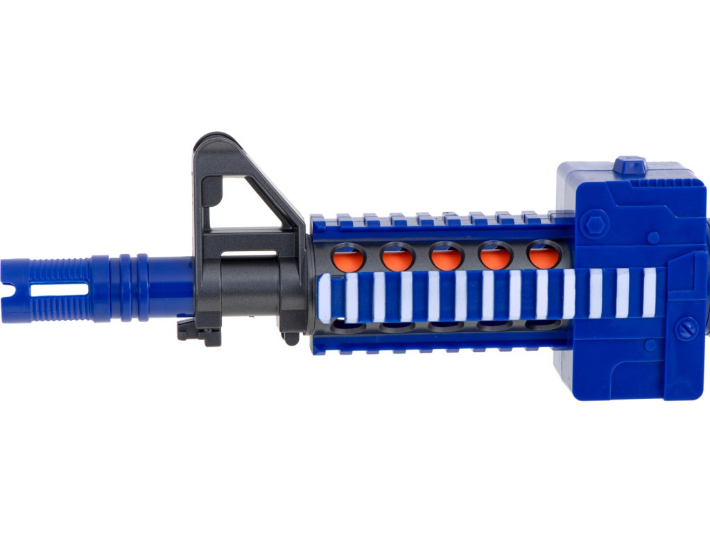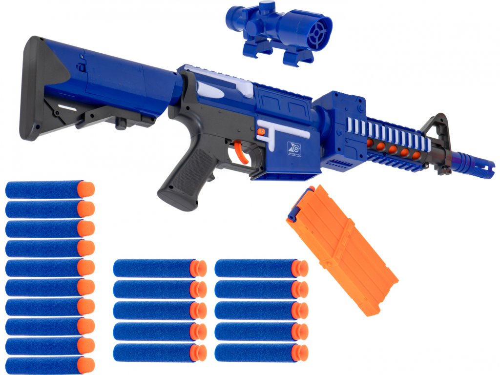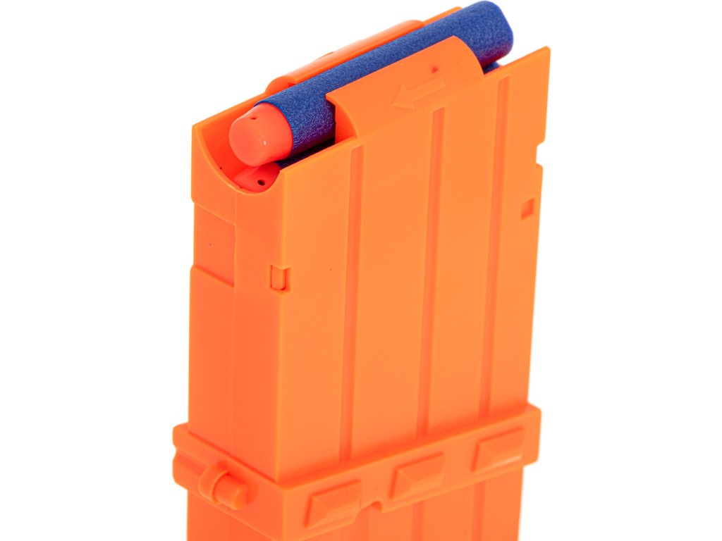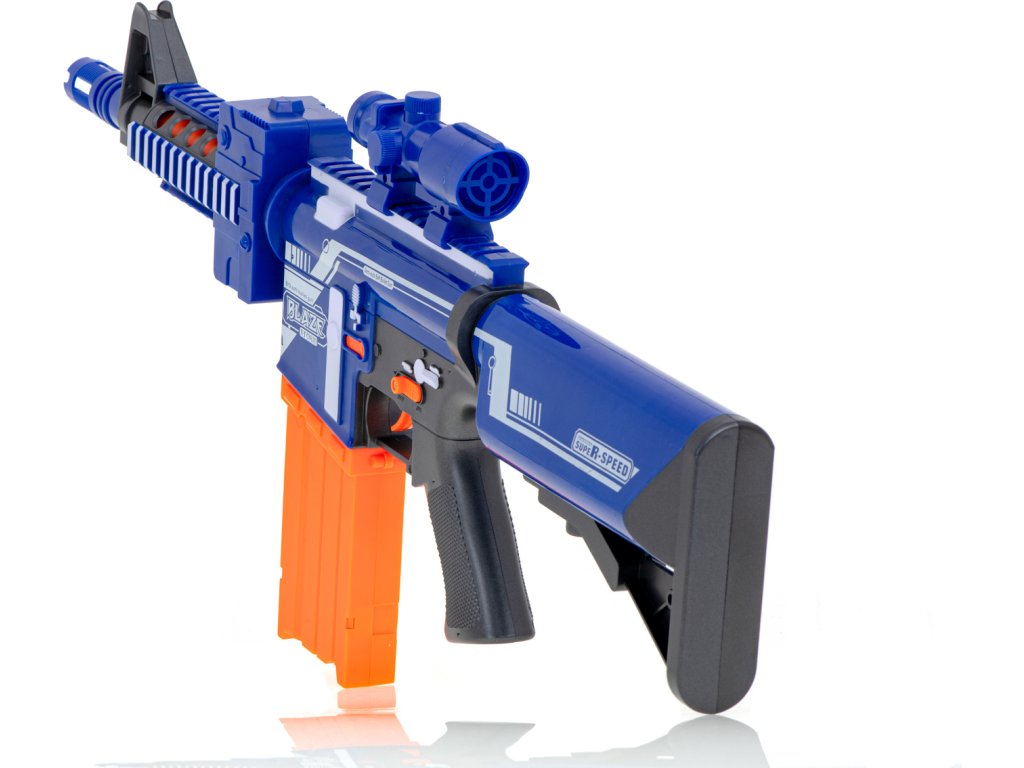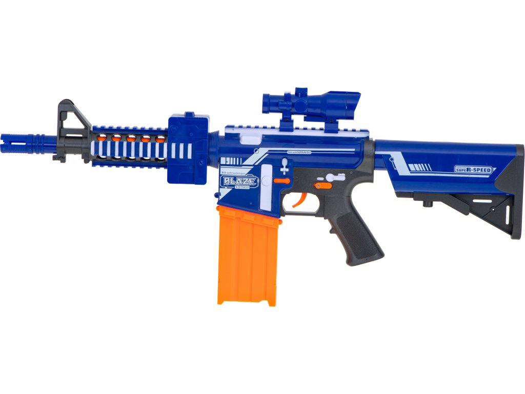 Samopal Nerf Blaze Storm + 20 nábojov sa dodáva s odnímateľným a pohyblivým zameriavačom, ktorého umiestnenie si môžete upraviť podľa svojich preferencií. Jednou z najväčších výhod hračky je pripevnený zásobník, ktorý pojme až 12 penových nábojov! Vďaka tomu je nabíjanie zbrane jednoduchšie a rýchlejšie. Ak chcete zásobník rýchlo vybrať, stačí stlačiť tlačidlo na pravej strane. Samopal Nerf Blaze Storm + 20 nábojov je automatická hračka. Pohonný mechanizmus je napájaný 5 batériami AA (nie sú súčasťou balenia). Rýchlosť streľby určuje batériová puška - môže vystreliť až 3 náboje za sekundu! Hračka vám dáva veľkú výhodu oproti súperovi. Strieľa nielen rýchlo a presne, ale aj ďaleko - dosah je až 10 metrov! Na začiatok potrebujete len batérie!