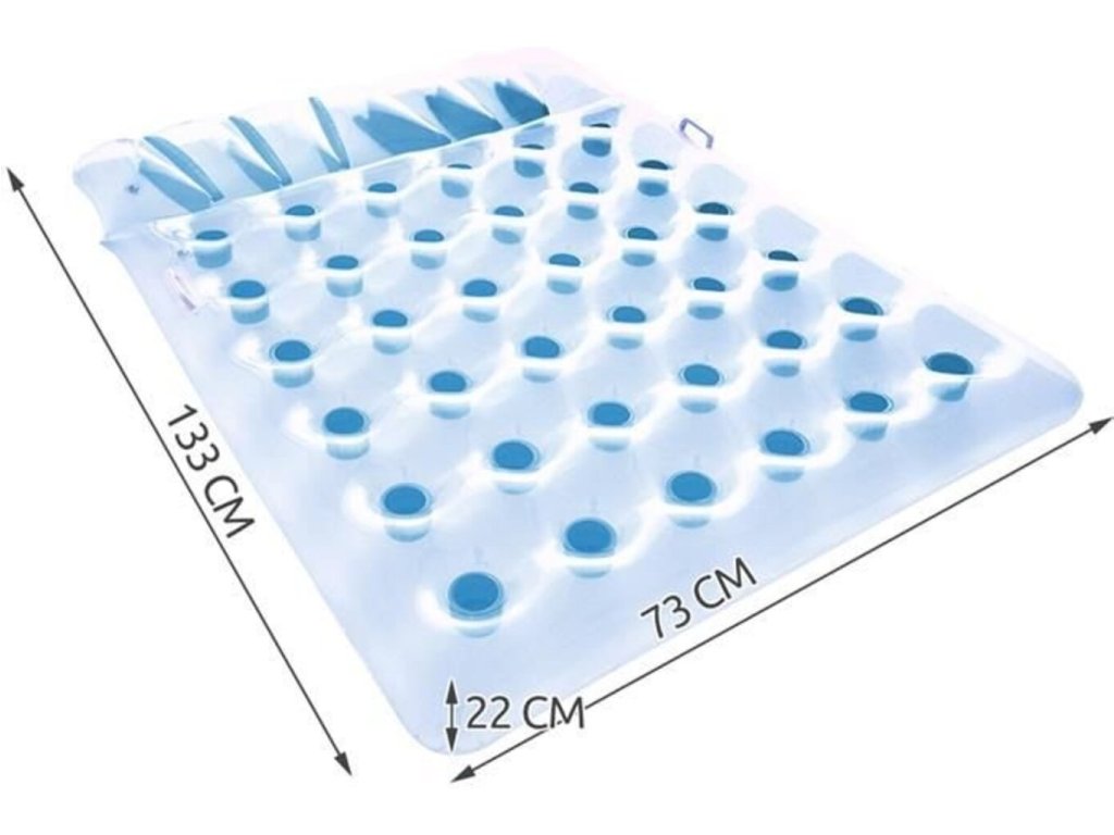 Spoločná dovolenka pri vode na pohodlnom, veľkom matraci zaručuje mnoho nezabudnuteľných chvíľ. Jeho výhody oceníte predovšetkým na pláži, ale tiež dobre funguje pri bazéne. Je vyrobený z vinylového materiálu odolného proti poškodeniu. Flexibilita navyše absorbuje otrasy a znižuje tak riziko perforácie. Okrem jeho použitia pre plávanie, môže byť tiež použitý pre relaxáciu na tráve, piesku alebo inom mäkkom povrchu. Farebný dizajn a zaujímavý tvar dávajú pozor a umožňujú rýchle umiestnenie matraca.