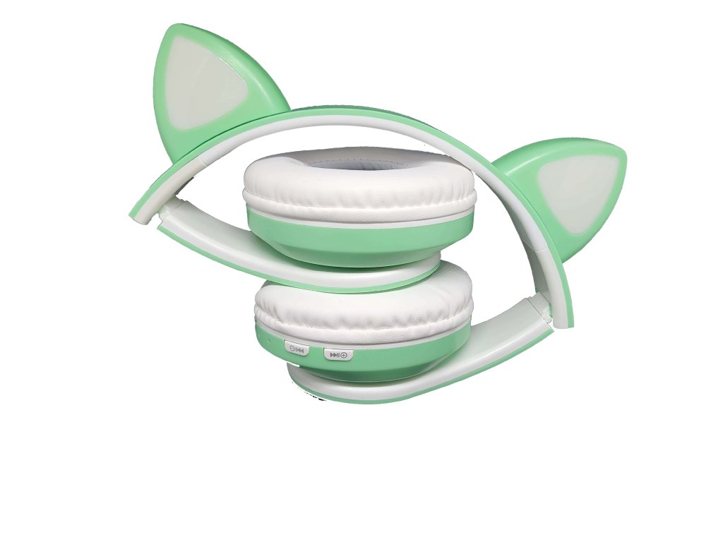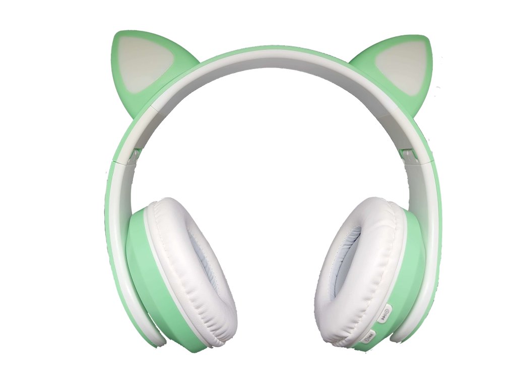 bezdrôtové Bluetooth slúchadlá s mačacími ušami, svietiace RGB, zelené