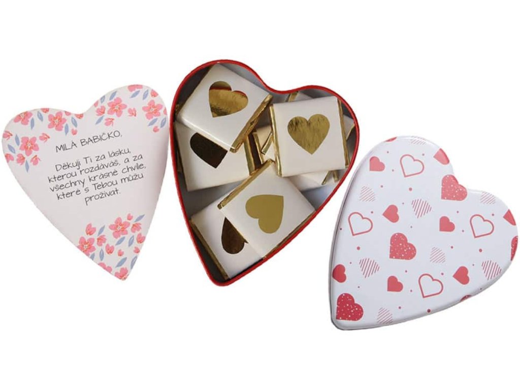 Čokoládové srdce pre babičku – Darčeková plechová krabička s čokoládkami 55 g