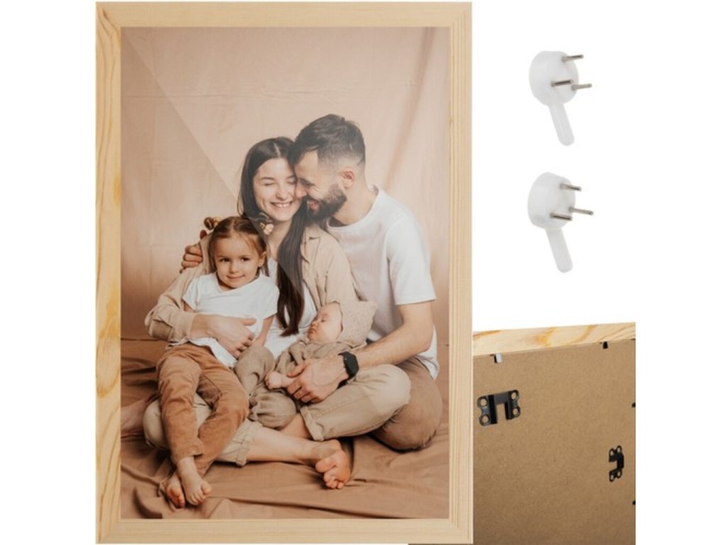 Štýlový fotorámik je odolný proti poškodeniu, nerozbitné plexi je bezpečné a rozhodne predlžuje životnosť rámu. Plastové sklo na oboch stranách je navyše chránené samolepkami, ktoré je nutné pred vložením fotografie odstrániť. Samotný rám je vyrobený z prírodného borovicového dreva. Zadná strana rámu je vybavená HDF doskou s hrúbkou 2 mm. Na tomto ráme je možné zarámovať nielen fotografie, ale aj plagáty, skice, kresby, diplomy alebo napríklad puzzle. To je skvelé riešenie, keď chcete zarámovať niečo dôležité. Náš rám je taktiež dokonale vhodný pre diamantové lakovanie s rozmermi 40 x 30 cm / 30 x 40 cm! Rám si môžete ozdobiť podľa ľubovôle. Je to surové borovicové drevo, takže ho môžete natrieť, pridať dekorácie alebo len nalakovať, aby si zachovalo svoj prirodzený vzhľad. Rám je uspôsobený na zavesenie na výšku aj na šírku. Vďaka ozubeným vešiakom je ľahšie nasadiť na klinec alebo háčik. Sada s rámom navyše obsahuje 2 háčiky na zavesenie na stenu.