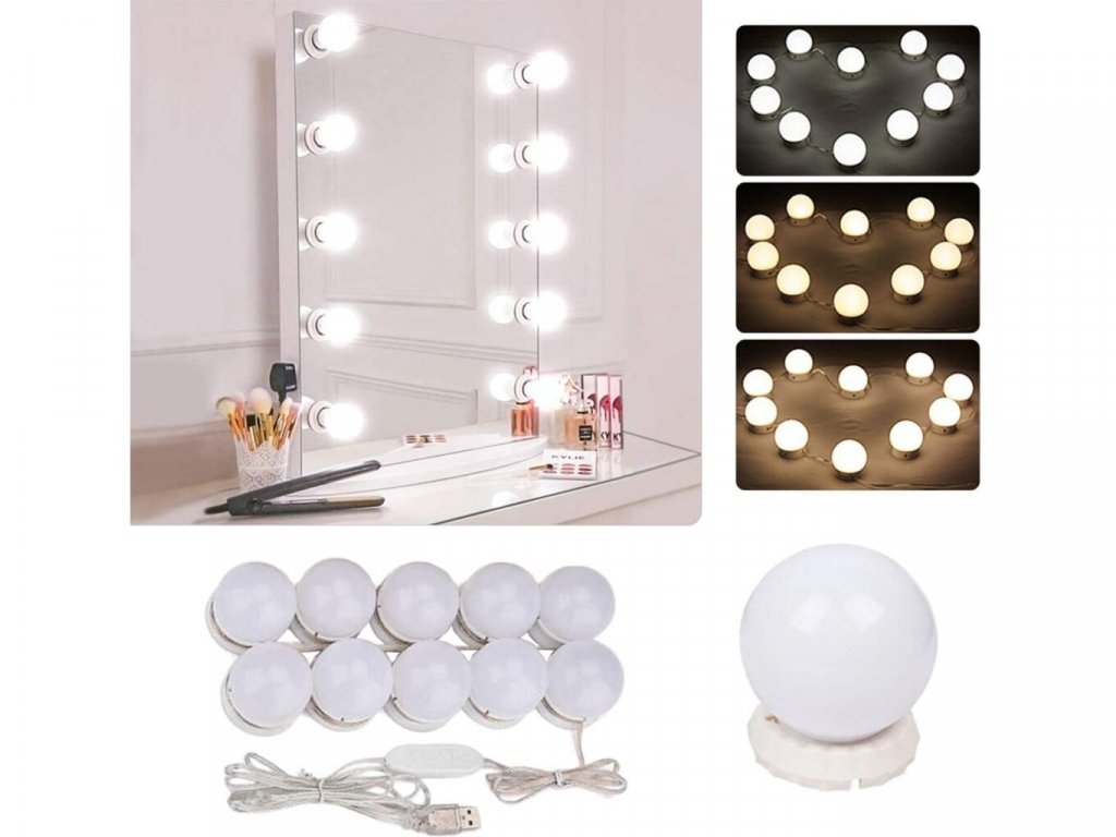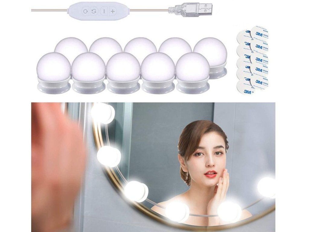 Nevyjdete z domu bez toho, aby ste sa neskrášlili? Odpovedali ste áno? Potom možno práve pre Vás máme tieto revolučné LED svetlá na zrkadlo. LED svetlá na zrkadlo k toaletnému stolíku 10 ks sú dostatočné veľké, aby ste sa videli zo všetkých uhlov, osvetlia dokonale Vaše zrkadlo v kúpeľni alebo toaletný stolík, takže uvidíte každú nedokonalosť a tak sa Vám nestane že by ste mali napríklad nerovnomerne rozotretý make-up. Sú napájané pomocou USB kábla, používať ich môžete veľmi jednoducho pomocou diaľkového ovládača a poskytujú tri farbené odtiene svetla.