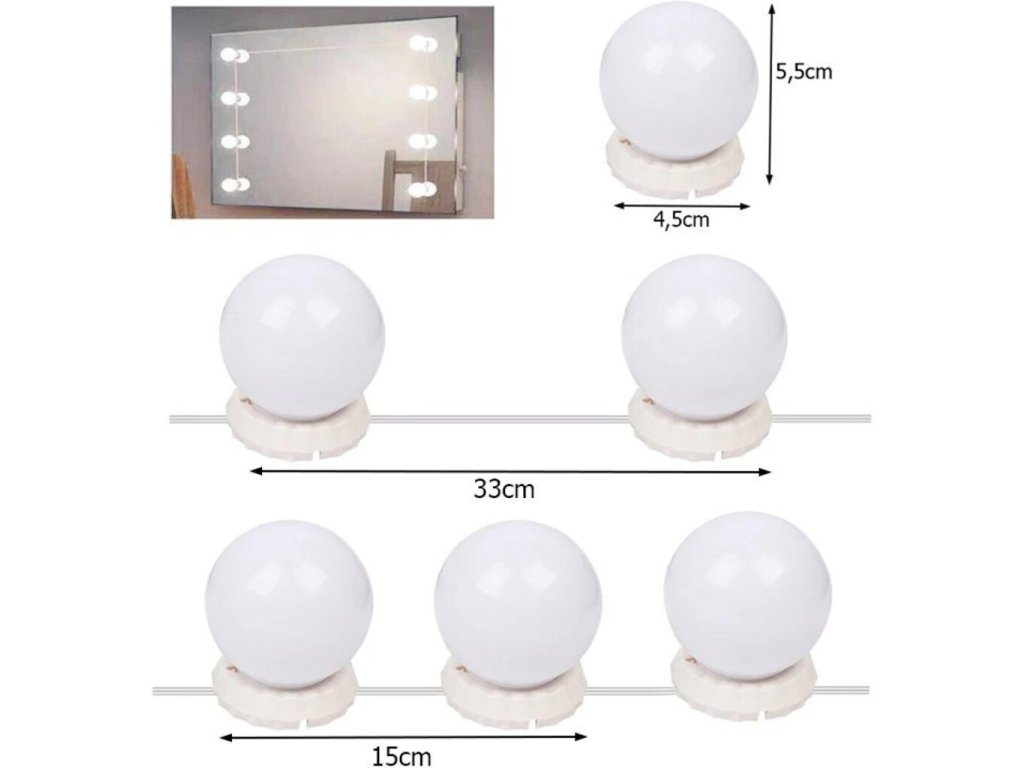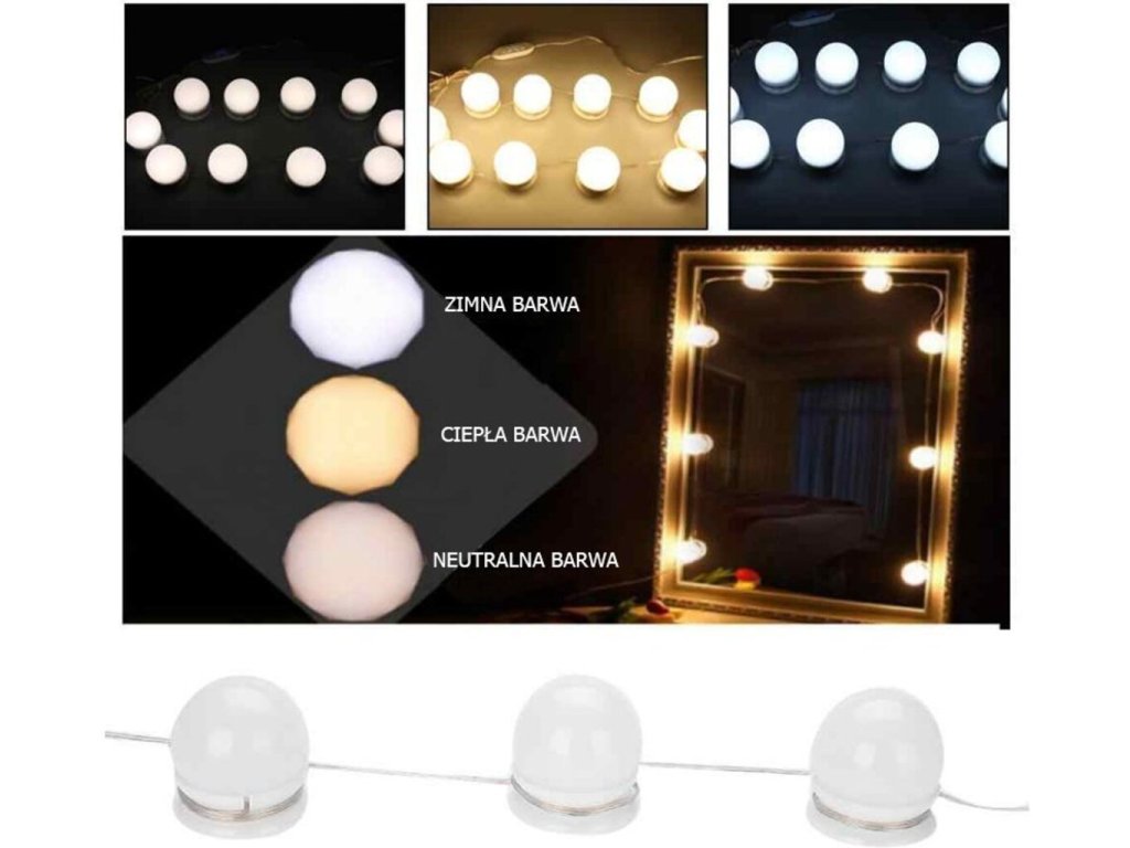 LED svetlá na zrkadlo k toaletnému stolíku 10 ks ideálne sa hodia nielen na líčenie, ale aj k iným kozmetickým ošetreniam - s nimi môžete nasadiť masku, upraviť obočie alebo nasadiť a vybrať šošovky bez ohľadu na svetelné podmienky v miestnosti, zrkadlo poskytne silné jasné svetlo. Energeticky úsporné LED osvetlenie poskytuje širokú škálu interiérového designu a usporiadania. Žiariace, prenosné lampičky v retro štýle. Vhodné na nalepenie na akýkoľvek rovný povrch.
