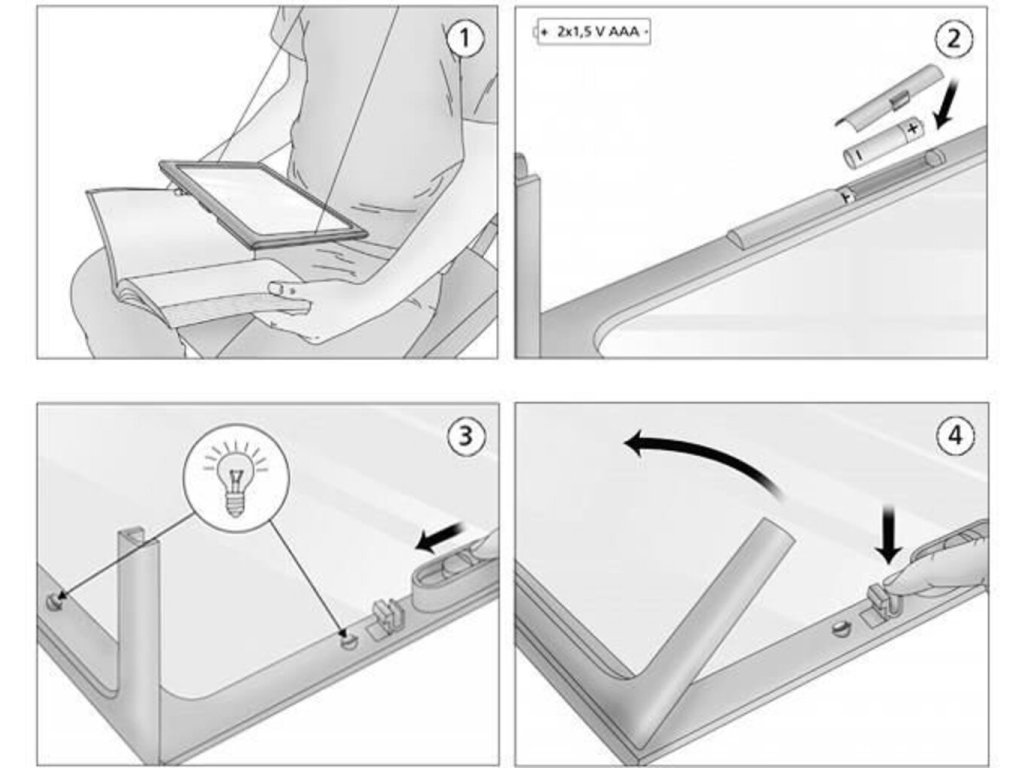 Vďaka 4 LED diódam možno lupu používať v tme (večerné čítanie knihy v posteli alebo na záhrade). Lupa má spínač, takže keď to potrebujeme, použijeme podsvietenie. Praktický tvar a veľkosť umožňujú čítanie veľkého textového poľa. Ľahký dizajn funguje dobre aj na cestách.