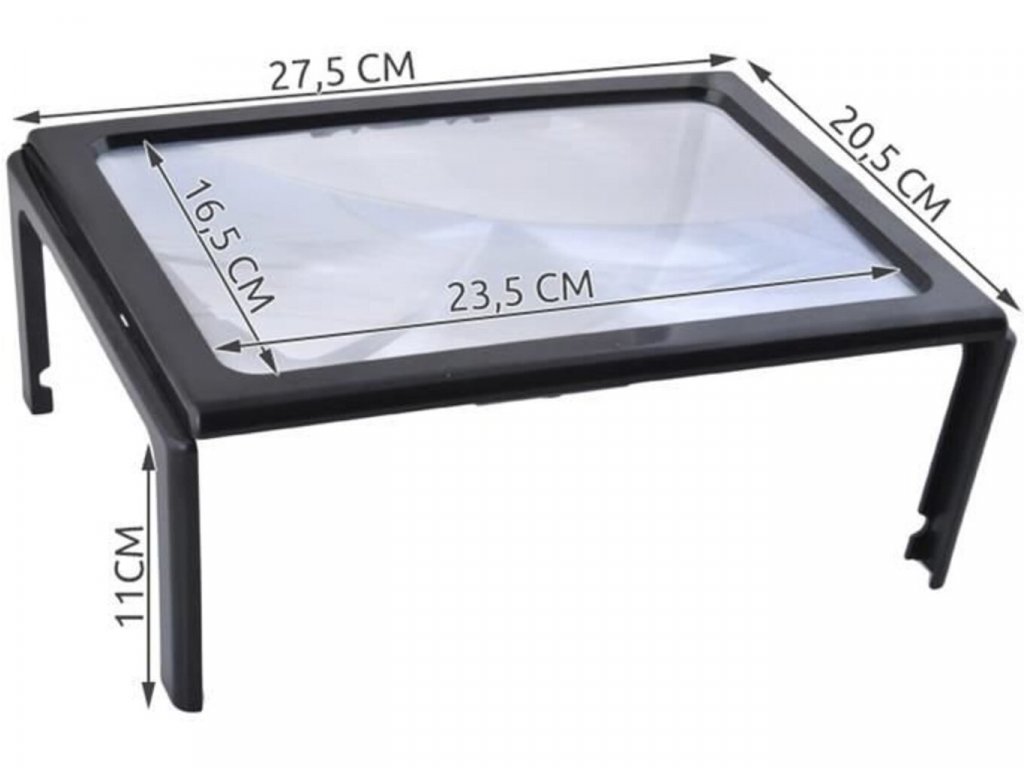 Jedná sa o veľmi praktickú lupu, ktorá uľahčí život. Ideálny darček pre seniorov a ľudí so slabým zrakom. Lupa má dve skladacie nohy, vďaka čomu nemusíme lupu držať v ruke, a tak máme voľné ruky a môžeme sa voľne starať napríklad o lakovanie nechtov, čítanie novín, informačné brožúry atď.