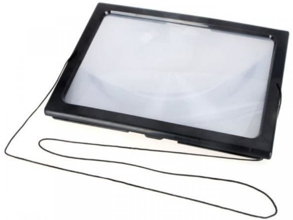 Lupa veľkosti A4 pre čítanie kníh, prehliadanie tlače, zoznámenie sa s ingredienciami produktov obchodu, prezeranie bankoviek, mincí, pečiatok, máp, katalógov, dokumentov, hobby.