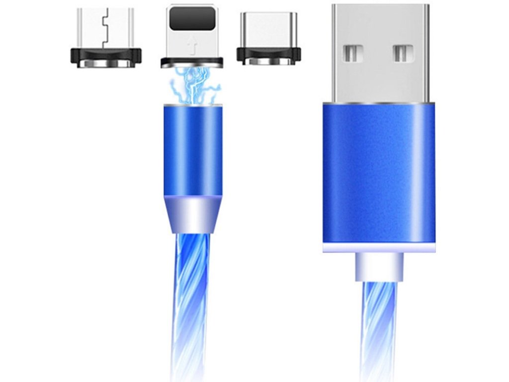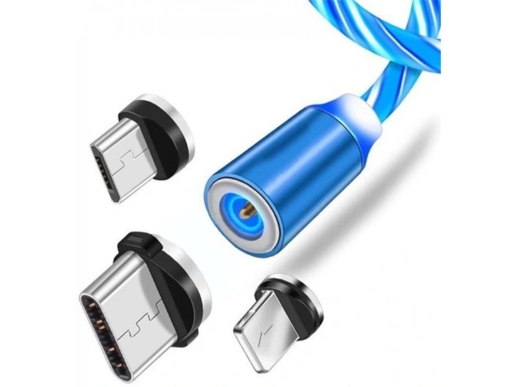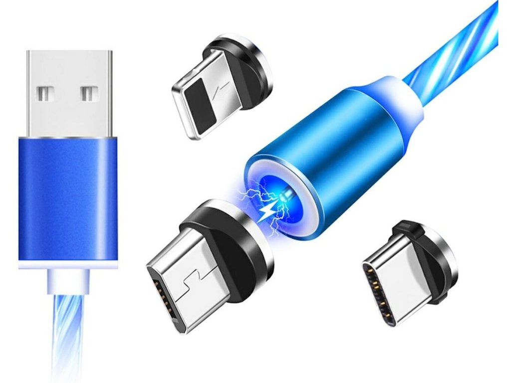 Magnetický nabíjací kábel 3v1 s LED podsvietením – USB-C, Lightning, Micro USB (1m)