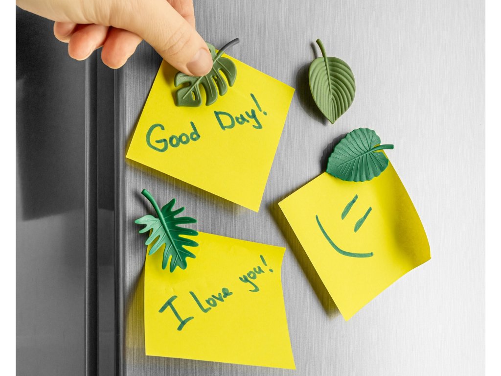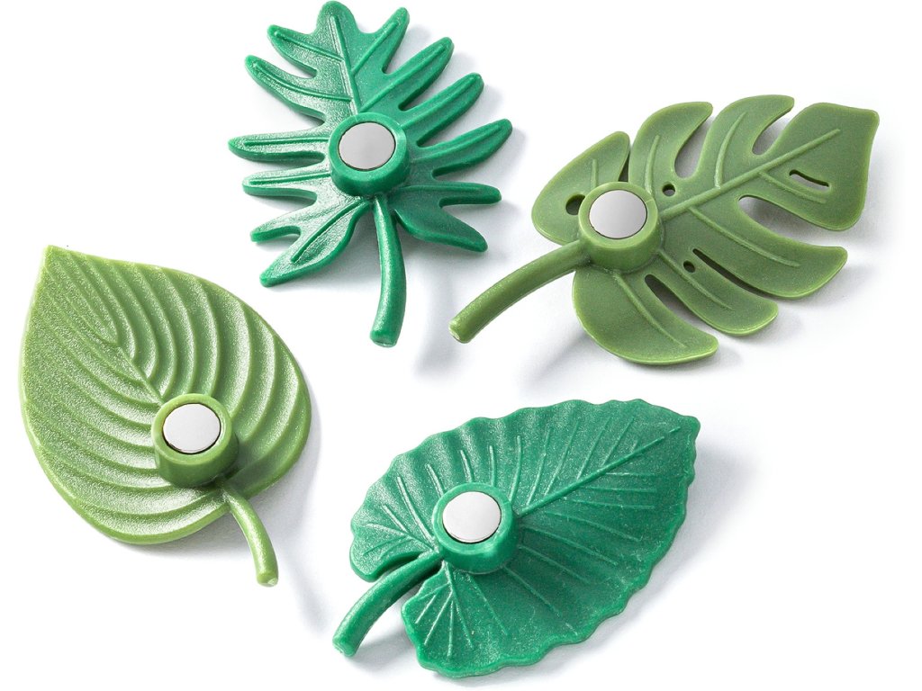 Oživte svoju kuchyňu alebo pracovňu jemným detailom z prírody. Táto sada štyroch magnetov v tvare tropických listov kombinuje funkčnosť s moderným dizajnom. Dva odtiene zelenej a realistické tvary okamžite premenia obyčajnú magnetickú tabuľu na štýlový doplnok.