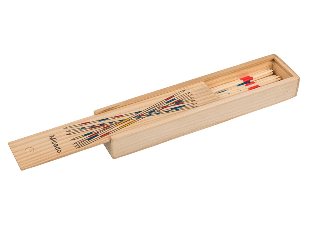 Vonku prší a vy trčíte doma alebo na chate so znudenými deťmi či priateľmi? Vneste do spoločnosti dávku súťaživosti a dobrej nálady. S týmto dreveným mikádom sa nudiť zaručene nebudete. Tak kto z vás je najšikovnejší a dokáže najzručnejšia narábať s drevenými paličkami? Opatrnosť i odvaha sú na mieste. Mikádo je tradičná rodinná hra, ktorej cieľom je vytiahnuť z kopy čo najviac drevených paličiek bez toho, aby ste ostatnými čo i len pohli. Musíte predsa dokázať svojim blízkym, že vy ste ten najšikovnejší. Oni si dovoľujú pochybovať?