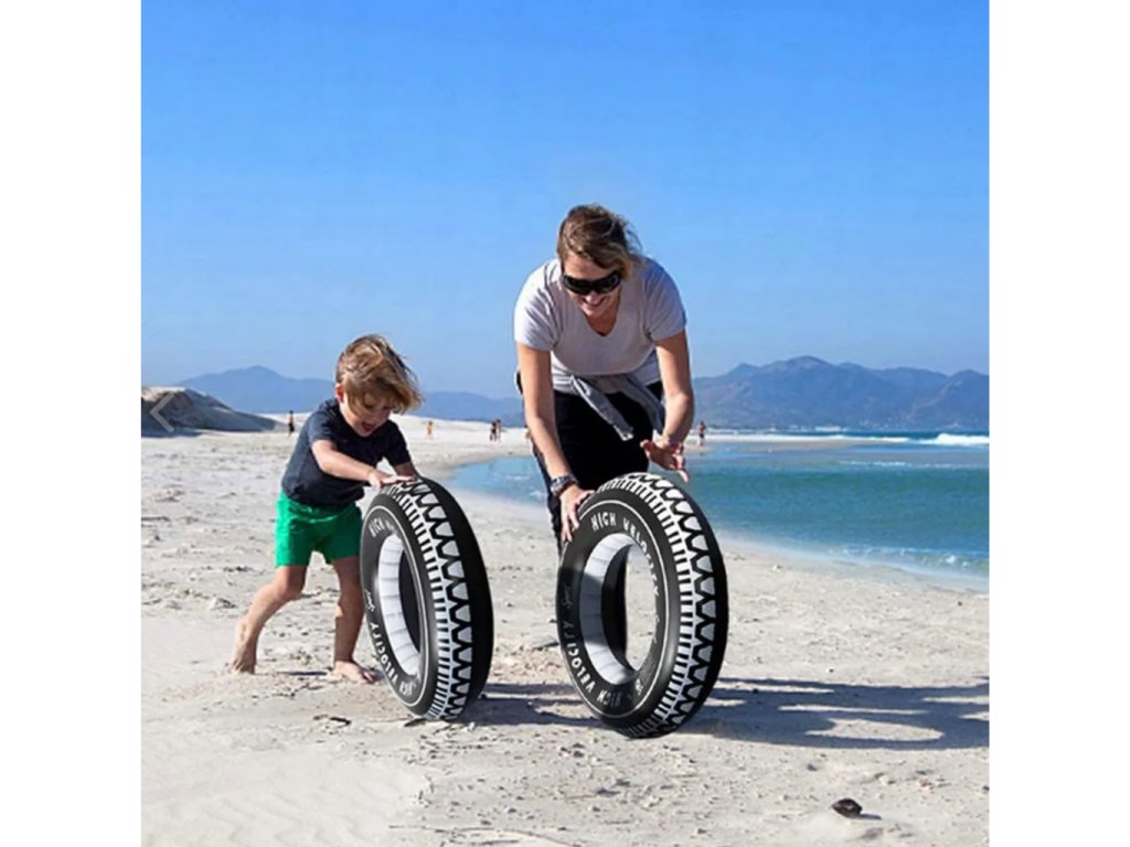 Koleso z pneumatík vyrobených z vinylového materiálu. Farebný odtlačok napodobňujúci povrch skutočnej pneumatiky priťahuje pozornosť. Je vybavený poistným ventilom, ktorý blokuje vzduch ako pri použití objektu, tak pri jeho nafukovaní. Veľké rozmery po nafúknutí umožňujú pohodlné vnútorné usporiadanie a bezpečné použitie momentov strávených na vode. Dva pevné držiaky zaručujú intenzívnu a bezpečnú hru na vlnách. Sada tiež obsahuje náplasť, ktorá umožňuje vykonávať opravy, ak je koleso prepichnuté.