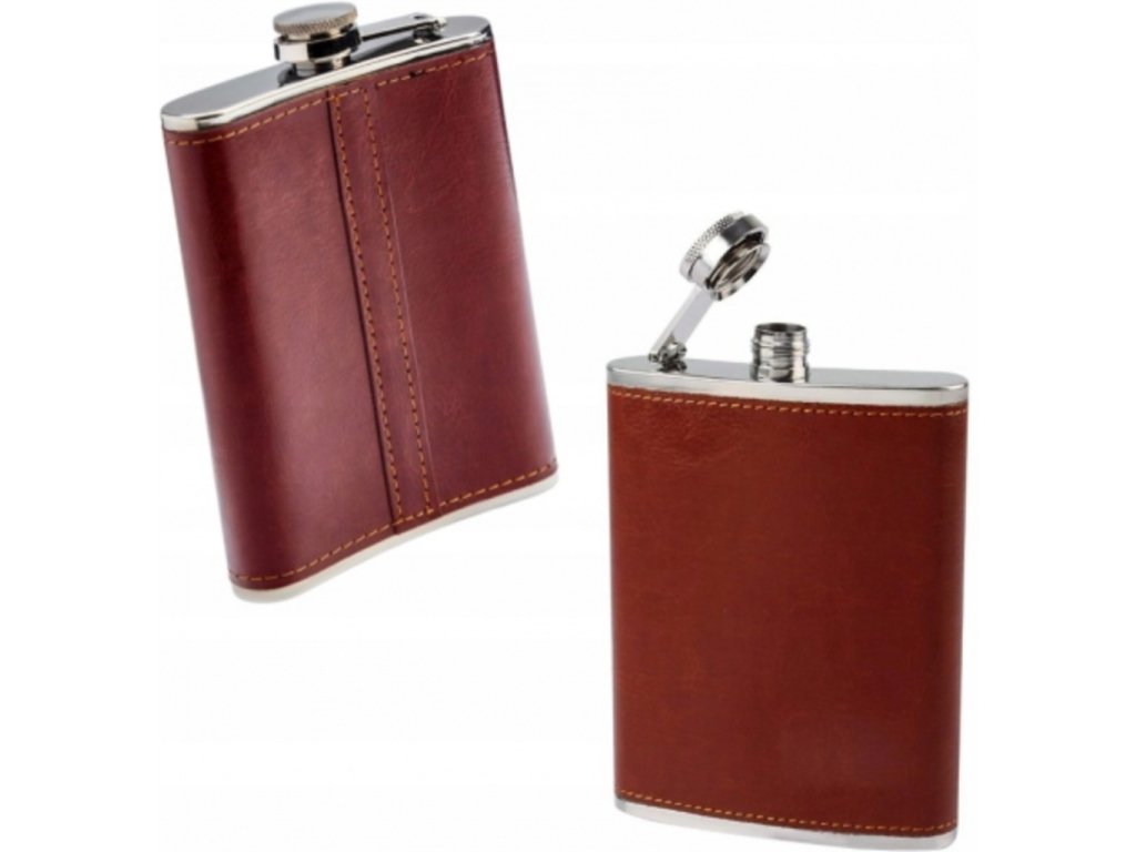 Nerezová ploskačka na alkohol 240 ml – hnedá ekokoža