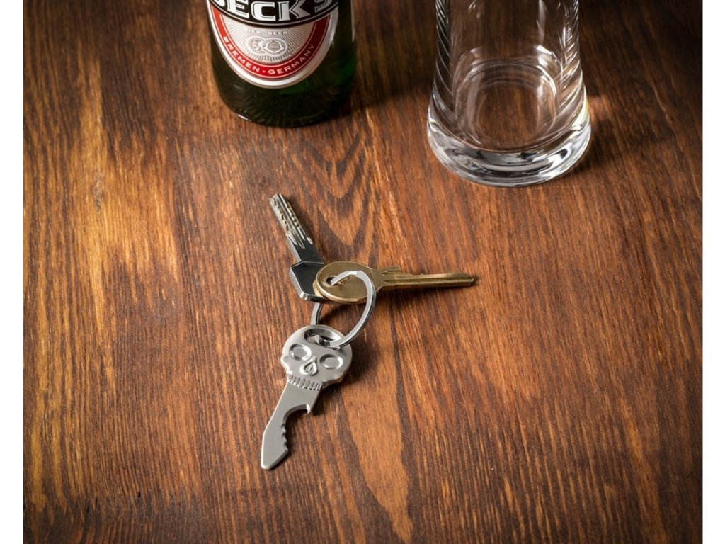 Vychutnajte si obľúbené pivko kdekoľvek a kedykoľvek. Samozrejme v prípade, ak si aj vy na kľúče zavesíte tento otvárač v tvare lebky, nebude to problém. Otvárač je pevný kovový, takže sa len tak nepoškodí. Má primeranú veľkosť, takže nezavadzia, ak nosíte kľúče vo vrecku. Kľúčenka v tvare lebky je aj štýlovým módnym doplnkom pre každého rebela alebo motorkára. Ak máte takého kamaráta, ktorý navyše obľubuje pivo, neváhajte, a darujte mu kľúčenku Otvárač lebka. Prívesok je dodávaný v darčekovom vrecúšku.