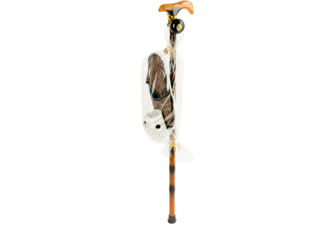 Máte v rodine staršieho gentlemana alebo dámu so zmyslom pre humor? Darujte mu praktický a zároveň zábavný darček. Tento darček tvorí vychádzková palica so zvončekom, domáce papuče a zábavný toaletný papier. Vychádzková palica pomáha staršiemu človeku pri chôdzi, má aj zvonček. Ak by človek spadol, alebo sa necítil dobre, môže zvončekom upozorniť ostatných. Alebo len ním pobaviť vnúčatá. Papuče doma zahrejú nohy. V tomto darčeku je aj toaletný papier, na ktorom je vytlačené sudoku. Potešte dedka a babku týmto pozorným darčekom!